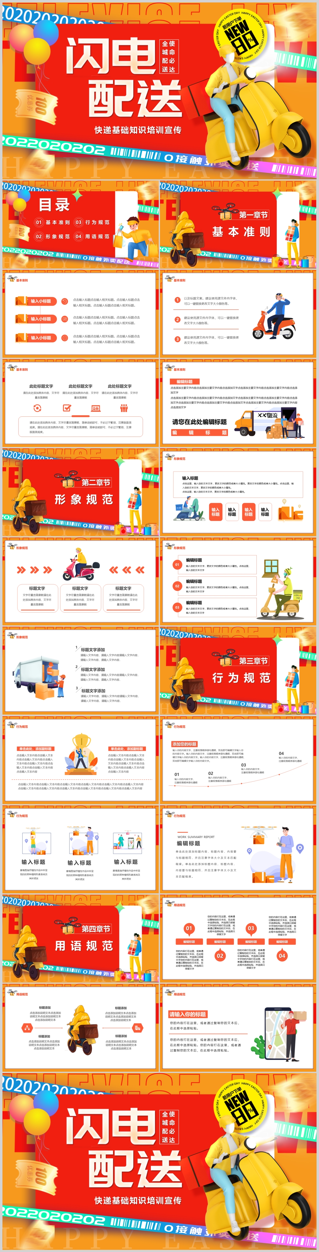 黄色实用创意快递外卖服务基层知识培训宣传课件PPT模板
