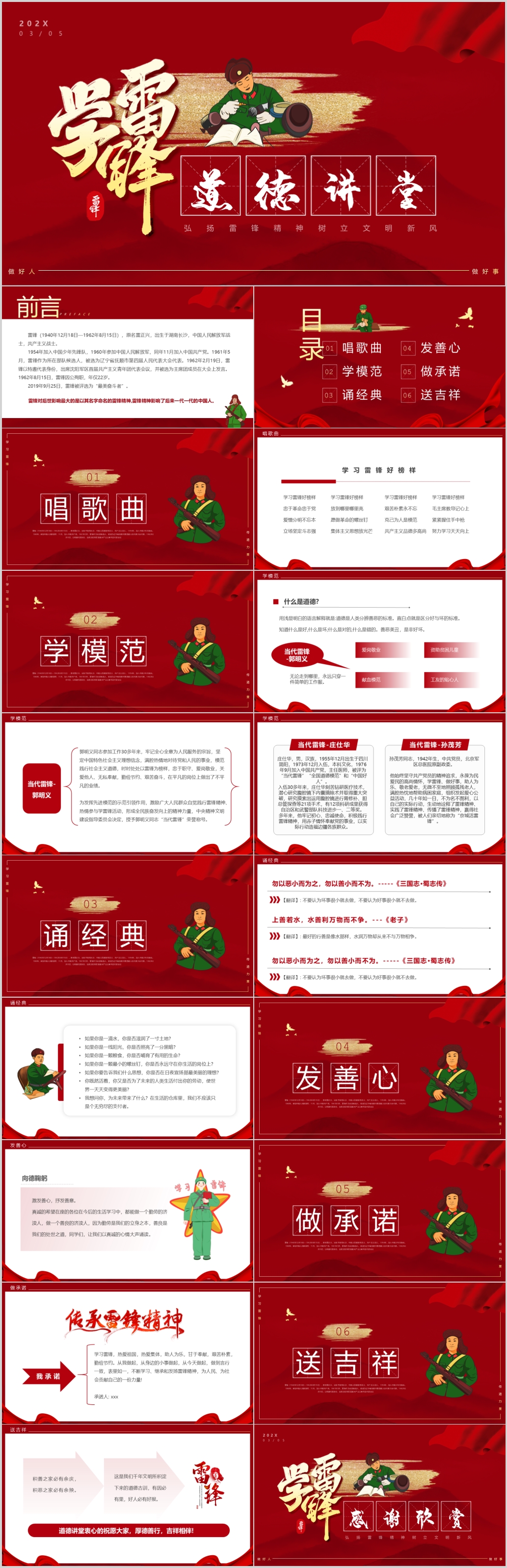 红色学雷锋好榜样树立新风道德讲堂主题主题班会ppt模板
