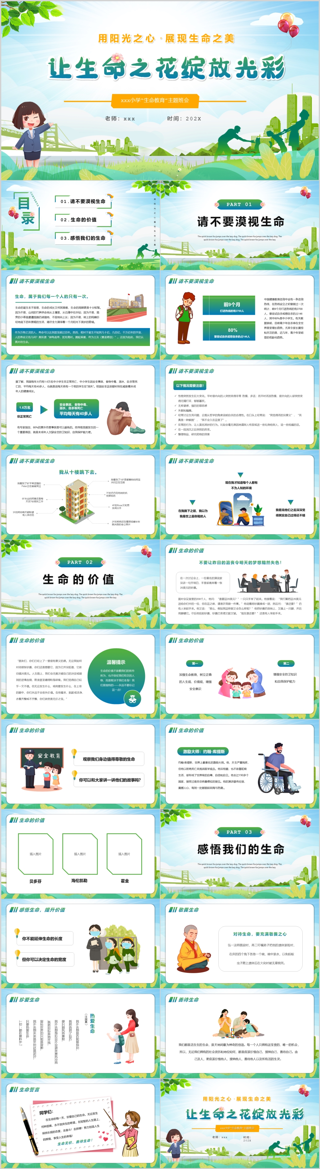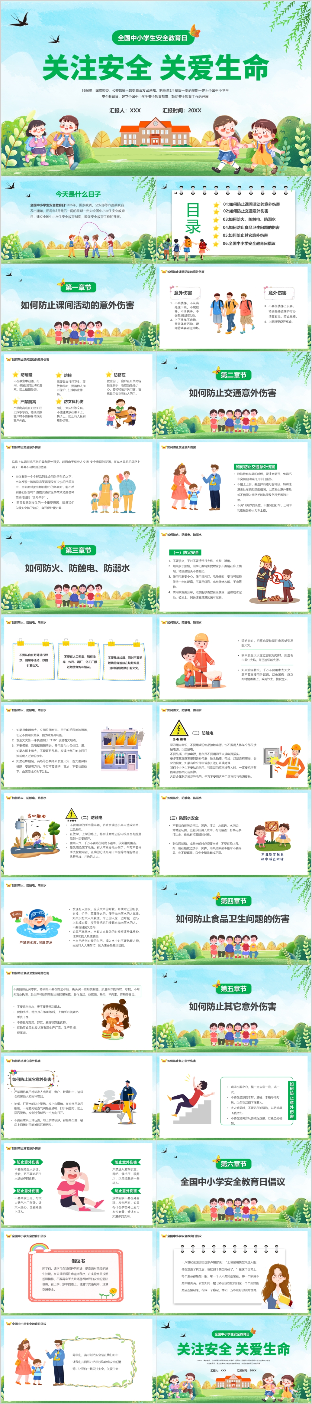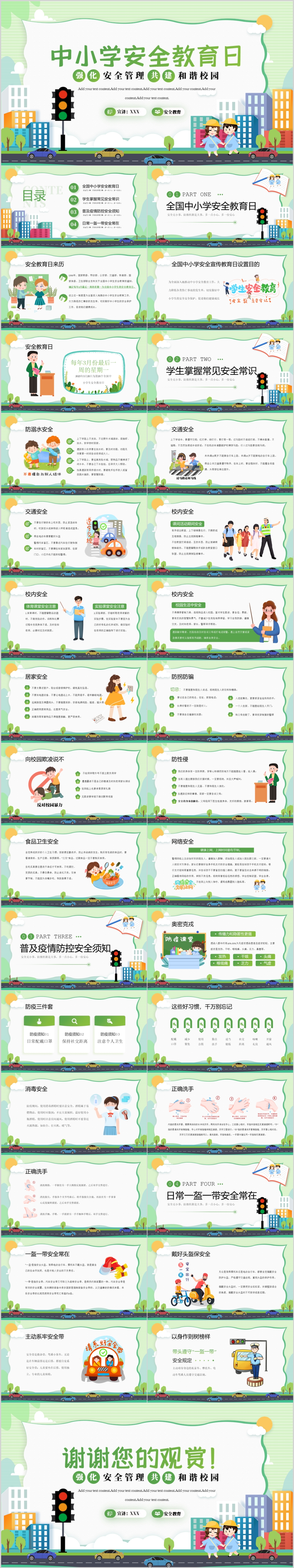 绿色卡通全国中小学生安全教育日主题班会ppt模板