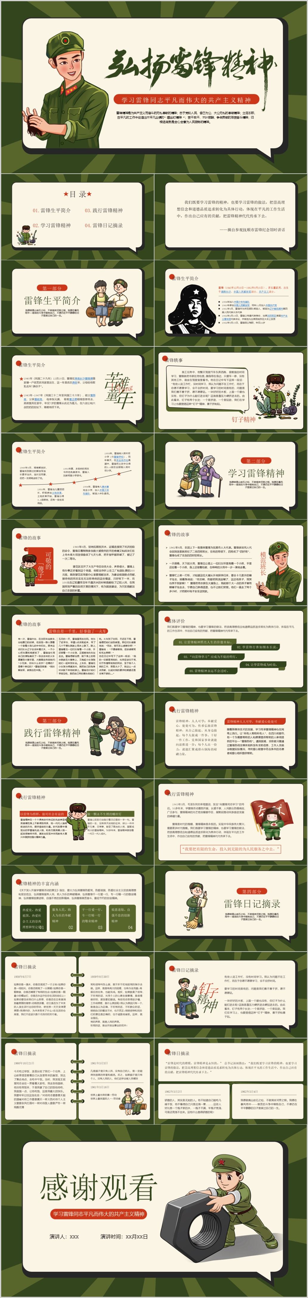 绿色3.5学习雷锋精神纪念日主题班会PPT模板
