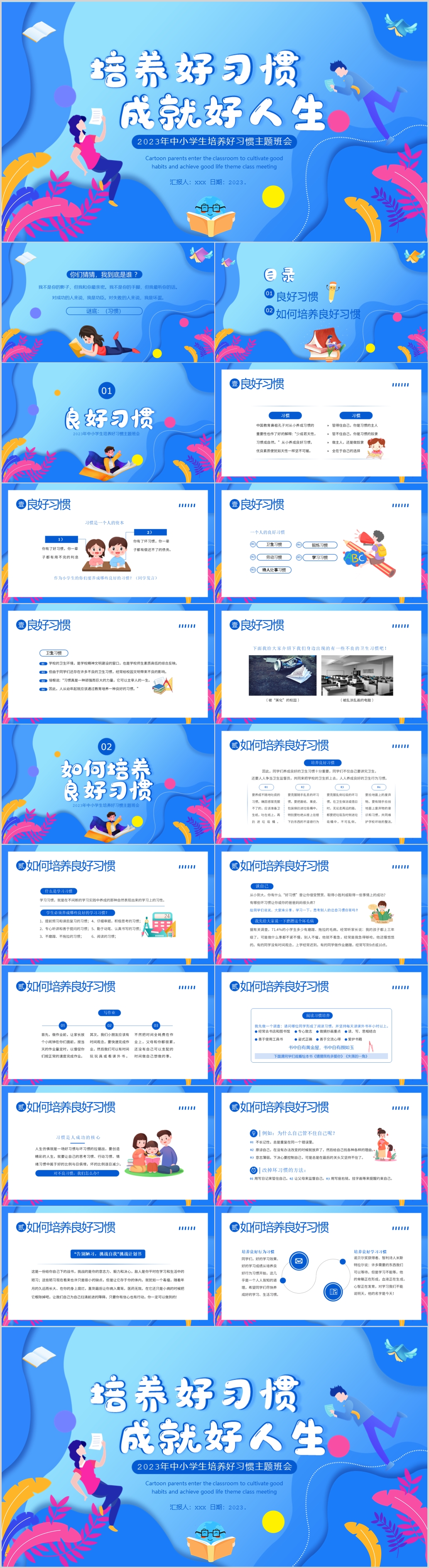蓝色卡通家长进课堂培养好习惯成就好人生主题班会PPT模板