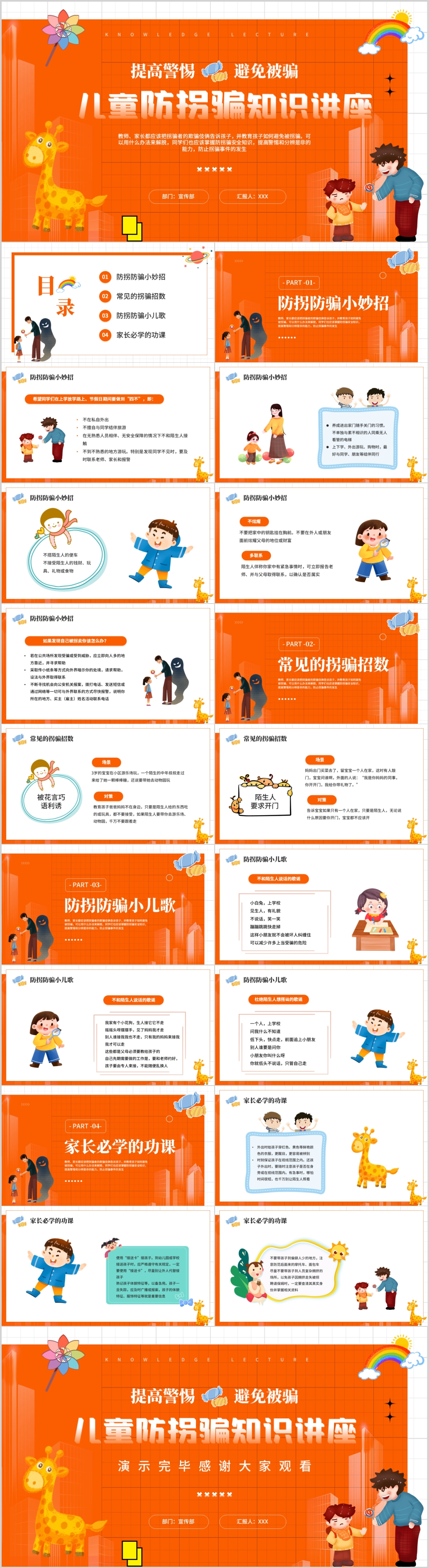 卡通提高警惕避免被骗防拐骗知识讲座主题班会课件PPT模板