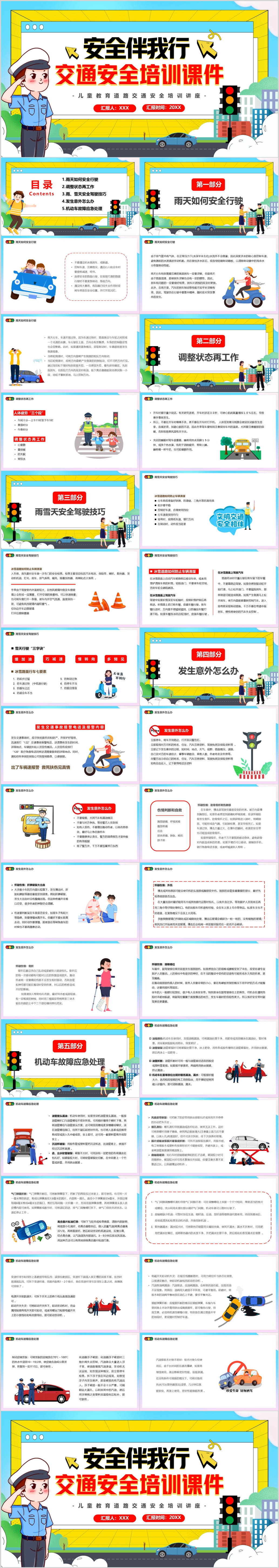 绿色卡通校园交通安全教育内容主题班会PPT模板
