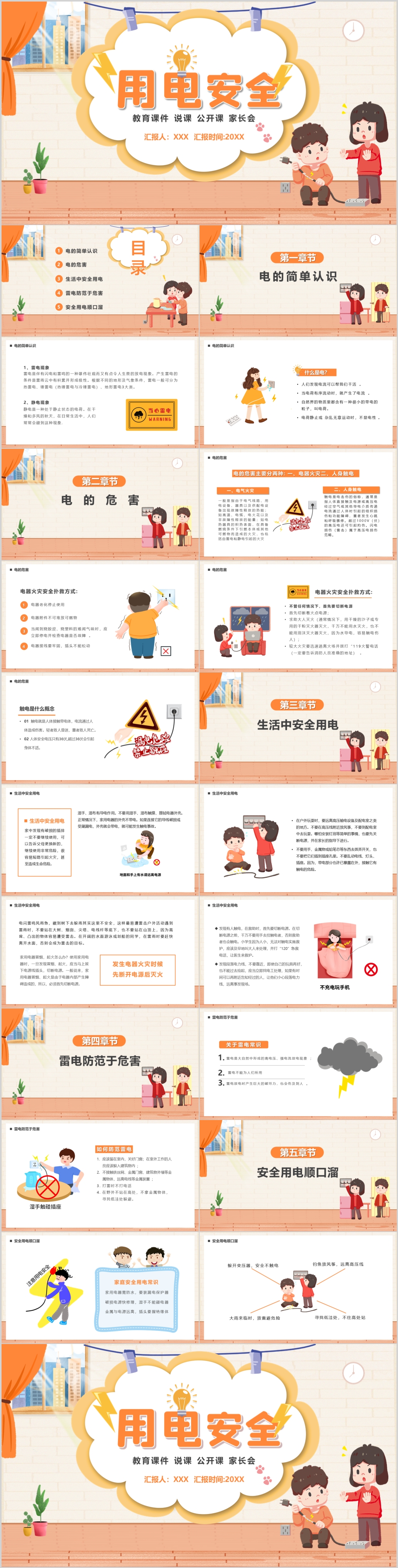 卡通用电安全预防触电知识主题班会教育课件PPT模板