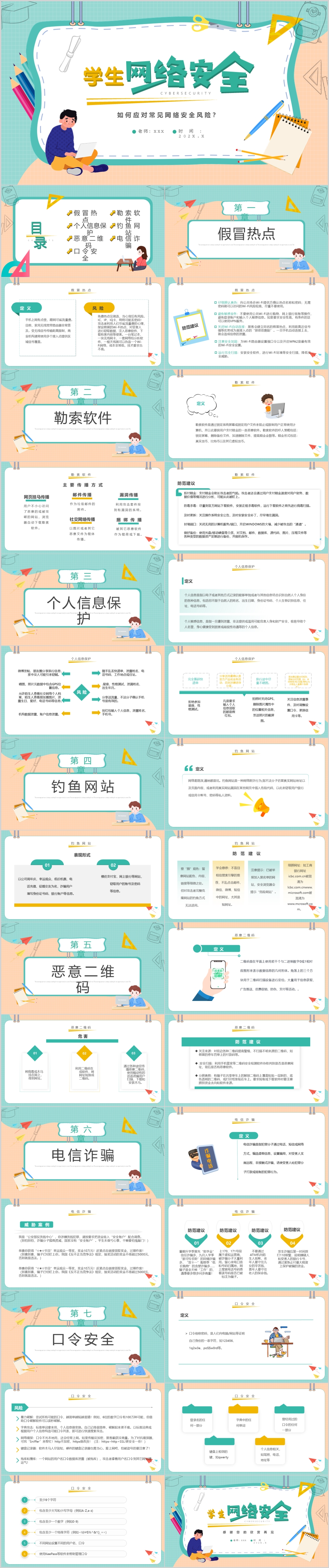 绿色中小学生预防网络安全诈骗主题教育班会ppt模板
