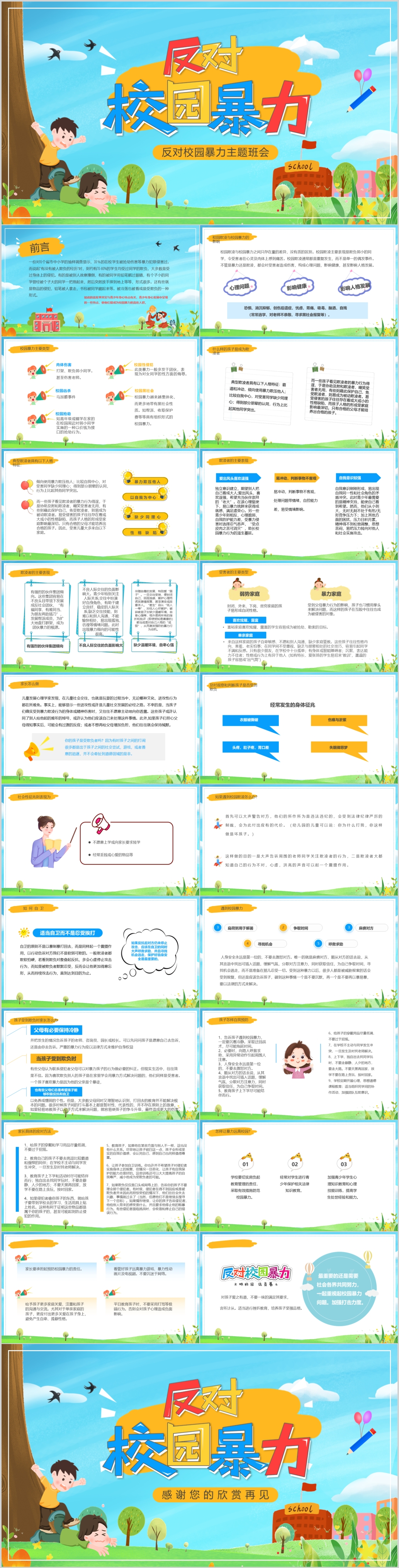 卡通反对校园欺凌校园暴力主题班会家长会ppt模板