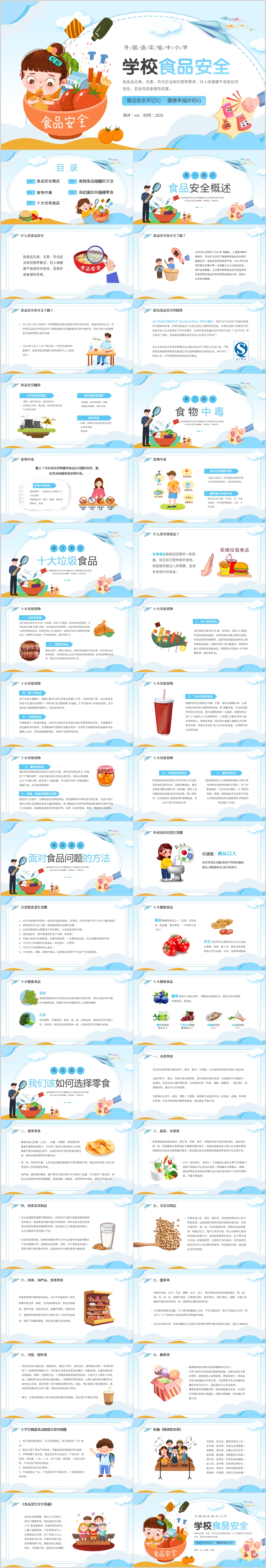 学校卡通幼儿园中小学生食品安全教育主题班会宣传课件PPT模板