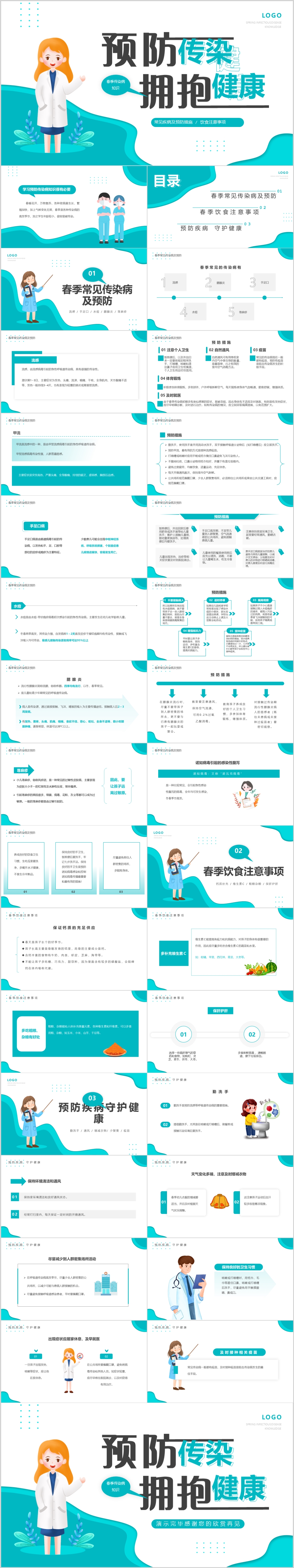 卡通春季传染病卫生如何预防主题班会课件动态PPT模板