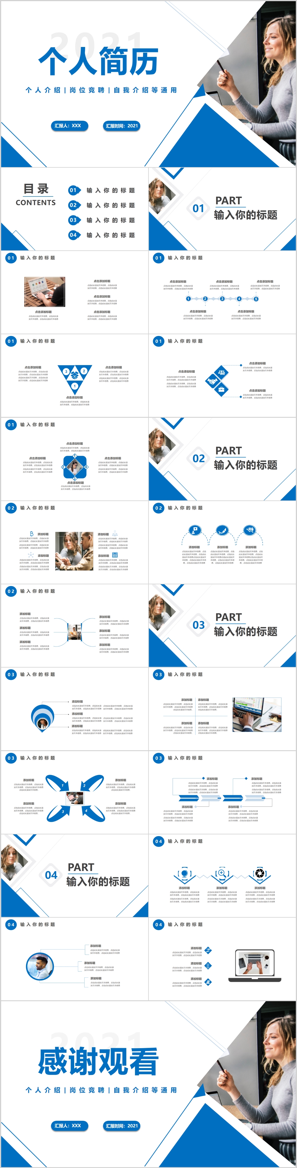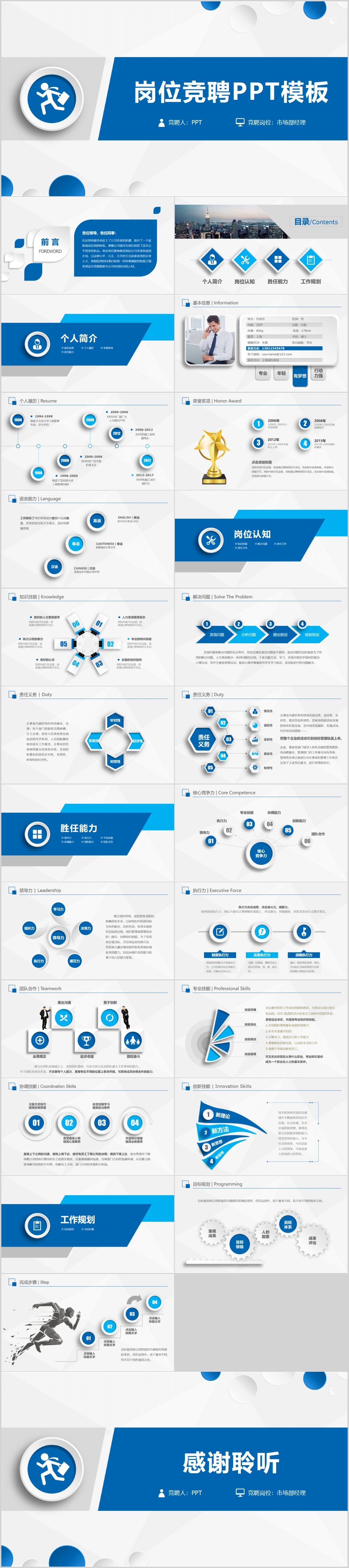 简约时尚大气精美蓝色岗位竞聘报告竞岗演讲求职简历PPT