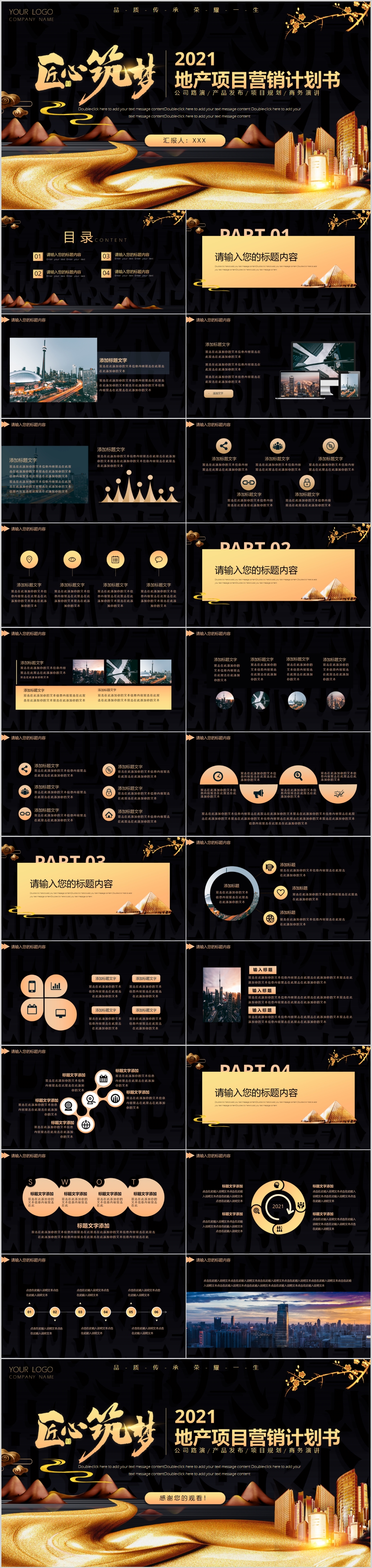 黑金色背景商务宣传销售营销策划方案PPT模板
