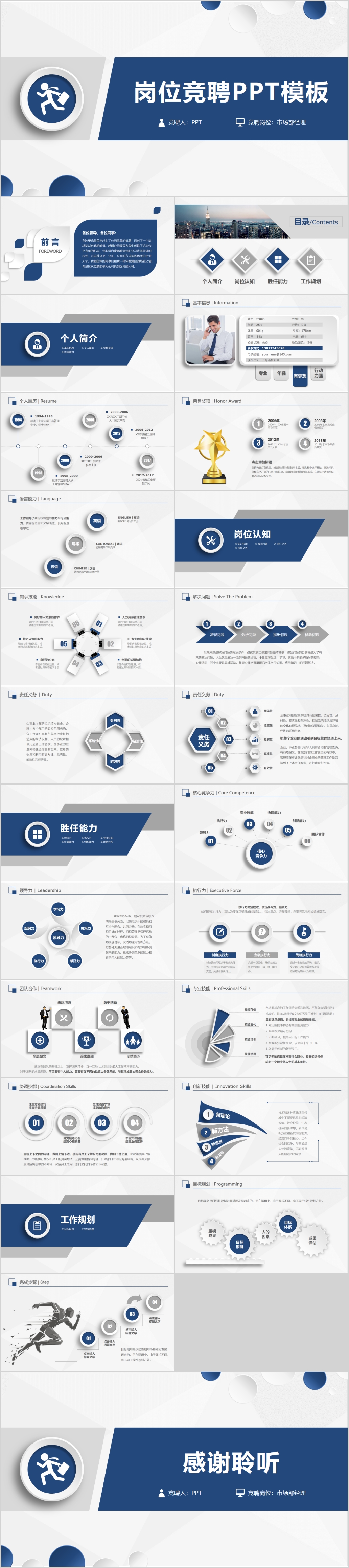 深蓝时尚个人竞聘简历通用ppt模板