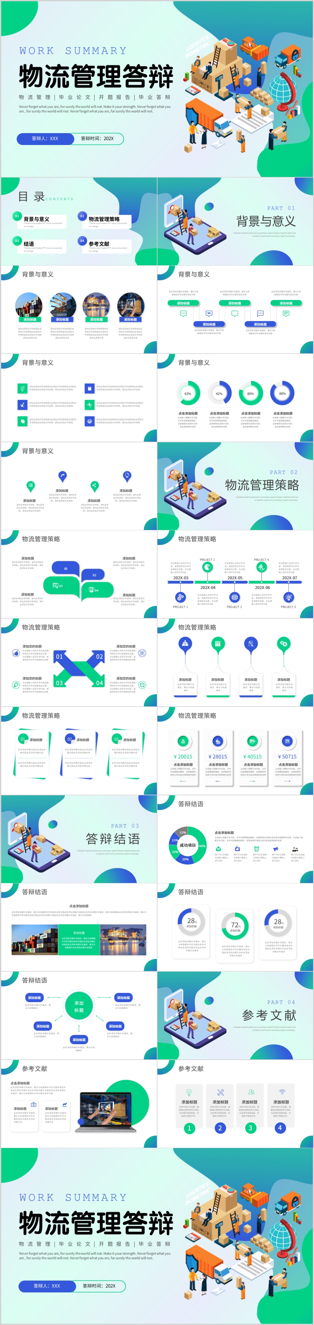 简约扁平化物流管理论文毕业答辩通用PPT模板