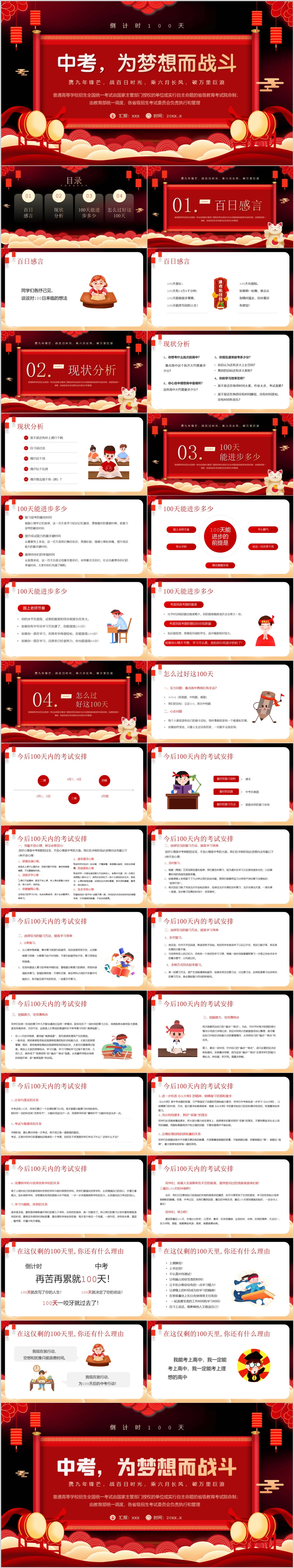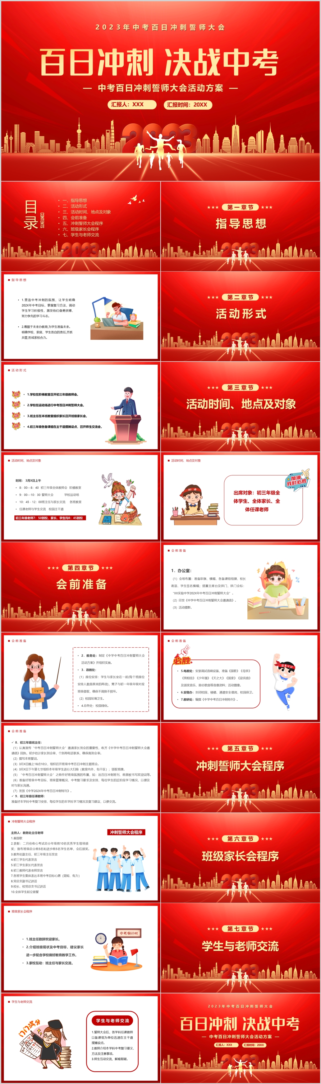 2023年红色中考备战备考倒计时誓师大会ppt模板