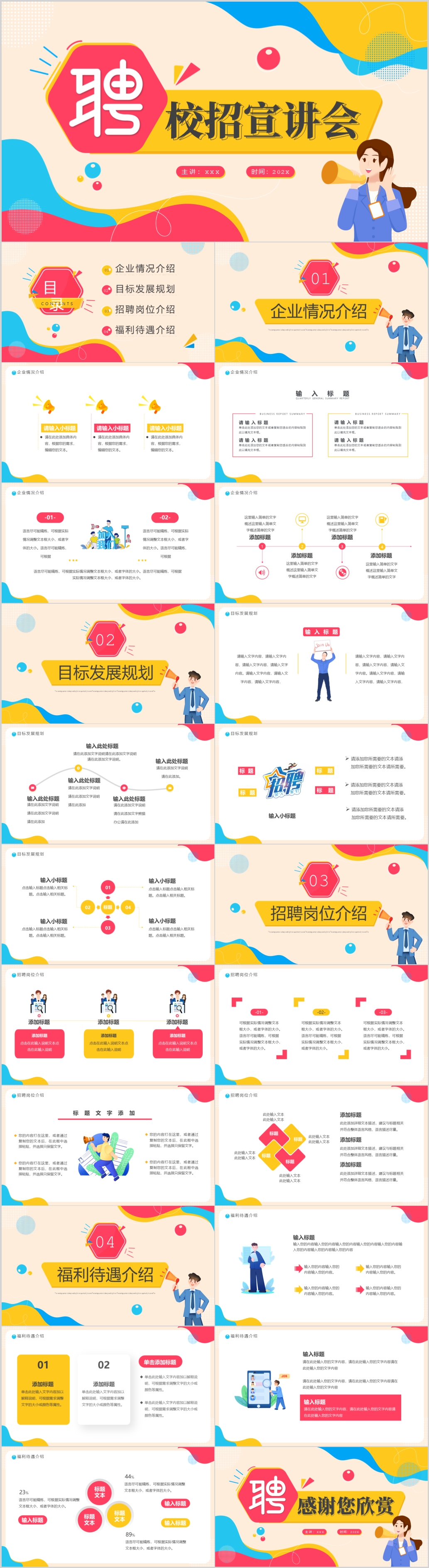 卡通校园招聘宣讲企业岗位需求人才招聘计校招宣讲会ppt模板