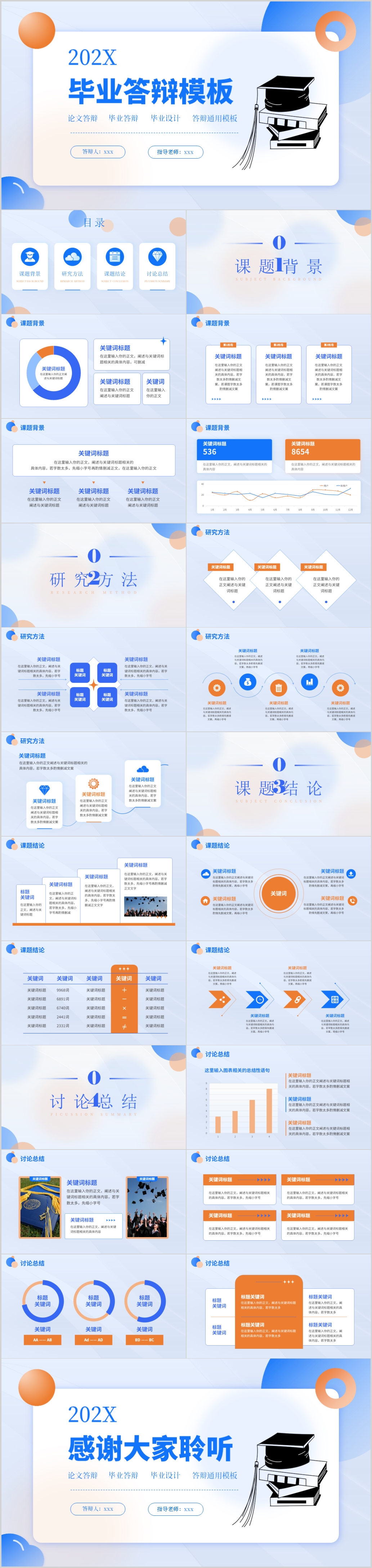 2023年蓝色卡片风简约毕业论文答辩ppt模板