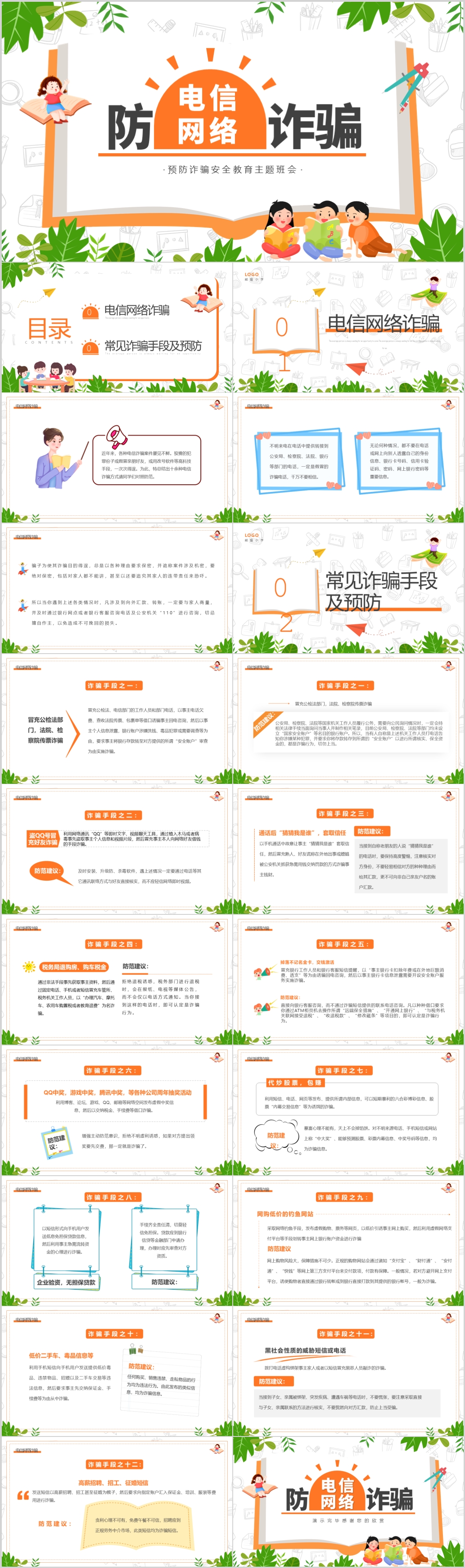 卡通预防电信网络诈骗安全教育主题课件PPT模板