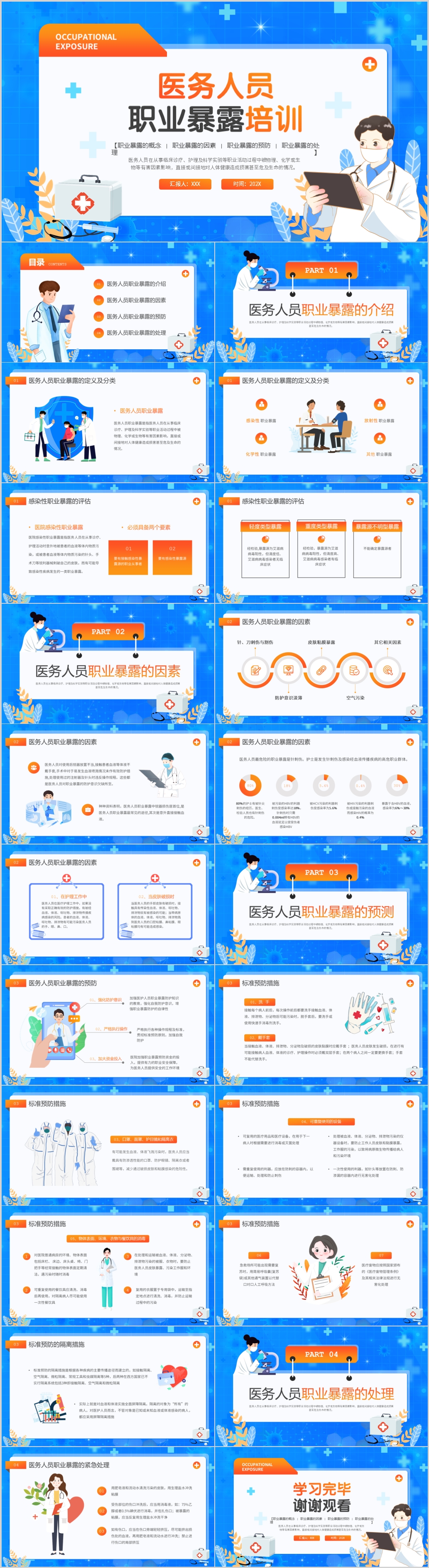 蓝色卡通医院医疗医务人员职业暴露培训课件PPT模板