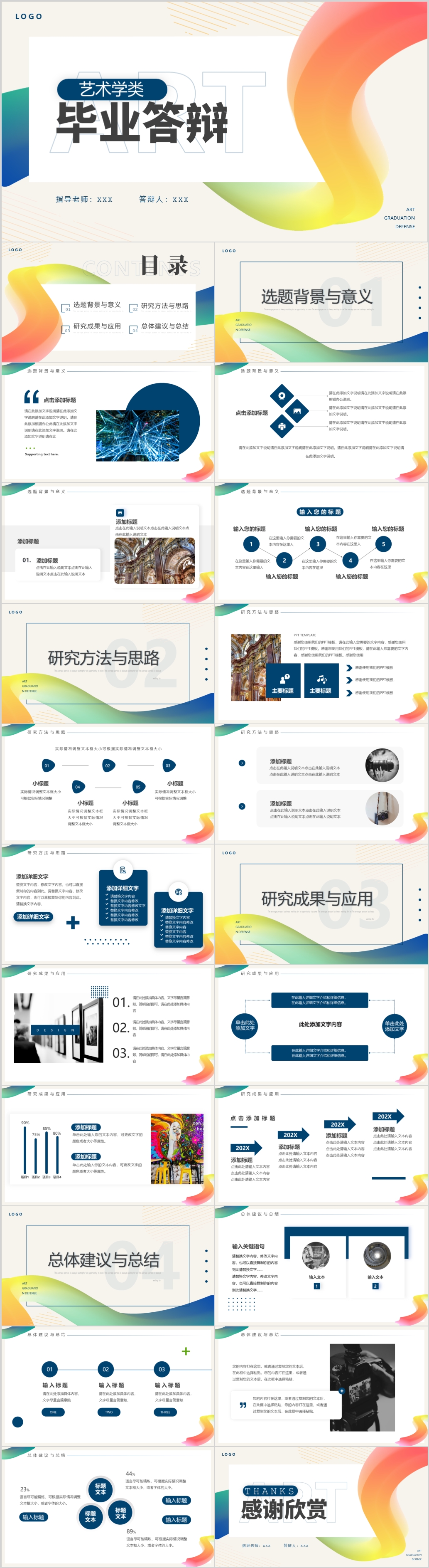 简约艺术学院毕业论文课题报告毕业答辩ppt模板