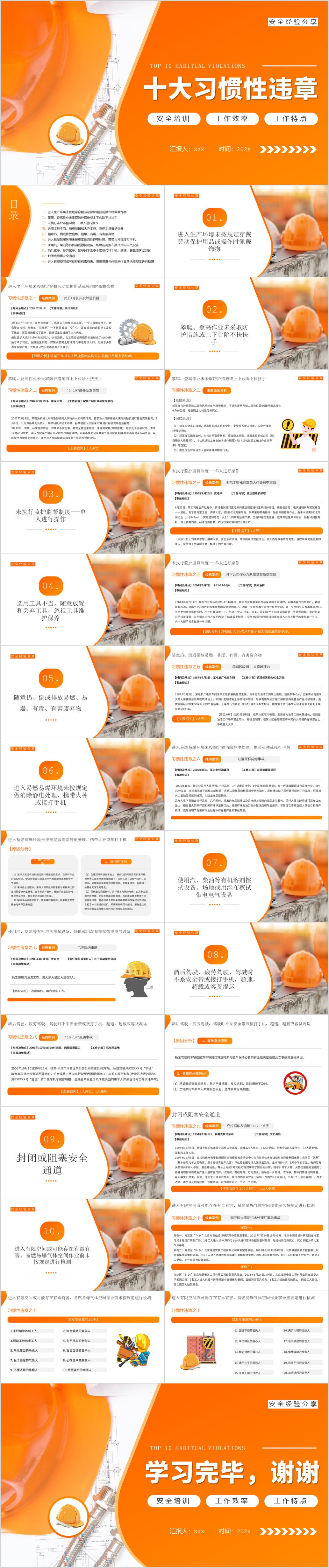 简约十大习惯性违章安全培训工作效率课件PPT模板