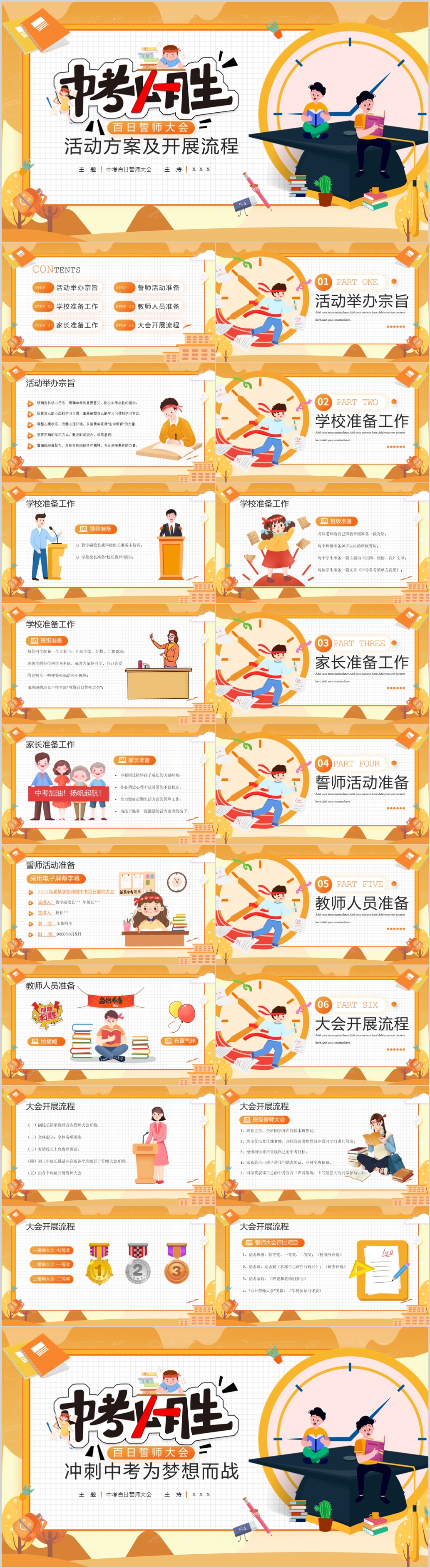 卡通冲刺中考为梦想而战百日誓师大会中考必胜ppt模板