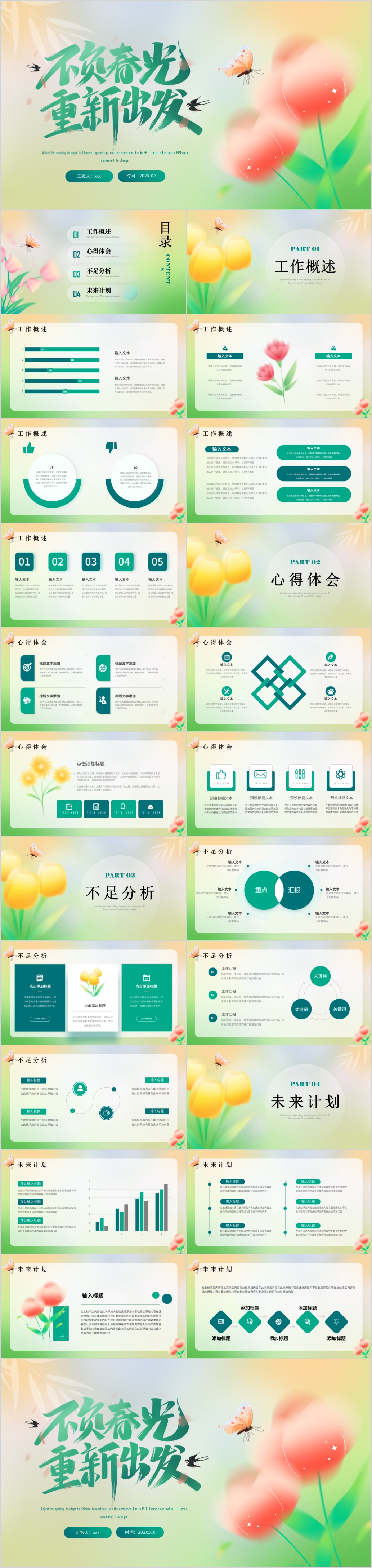 绿色小清新不负春光重新出发春天你好通用PPT模板