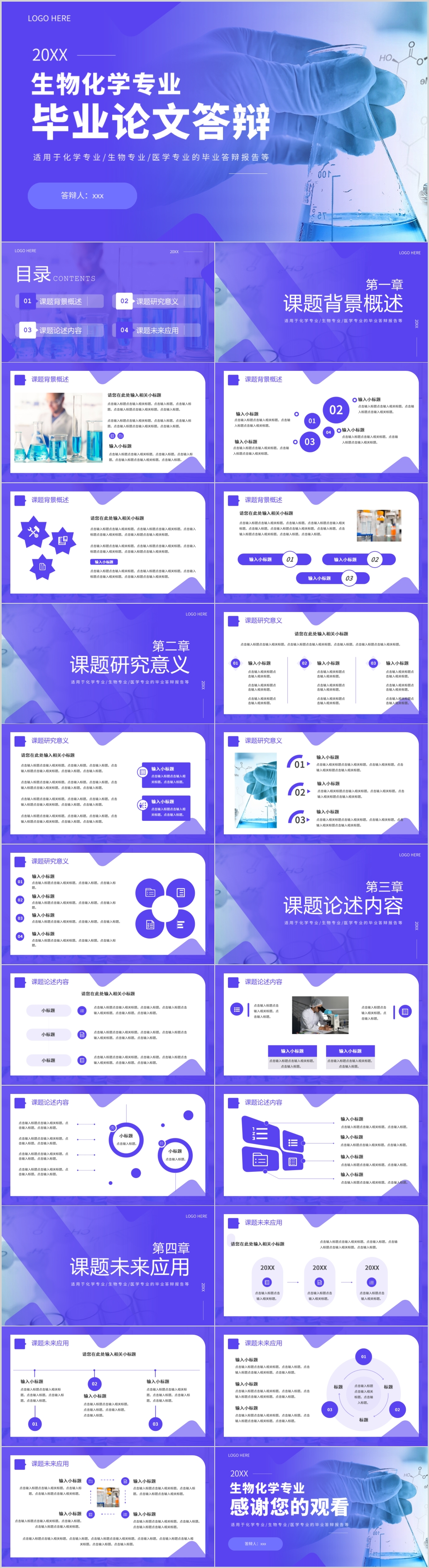 简约风生物化学专业毕业论文答辩开题报告通用PPT模板