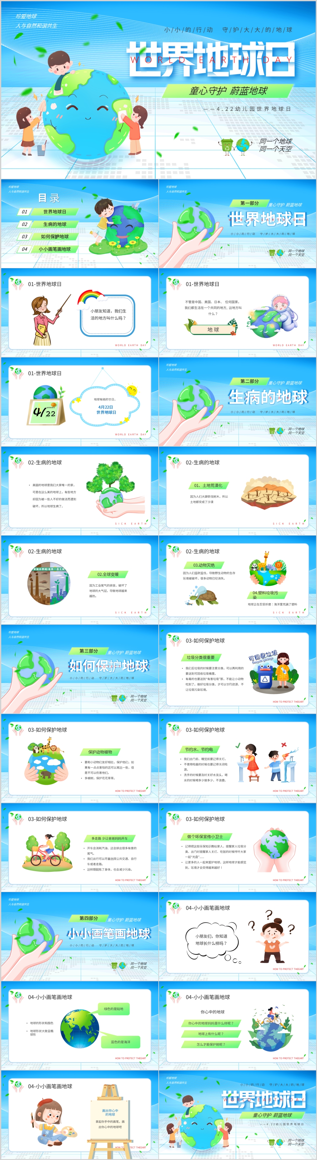 蓝色4.22幼儿园世界地球日主题班会课件ppt模板