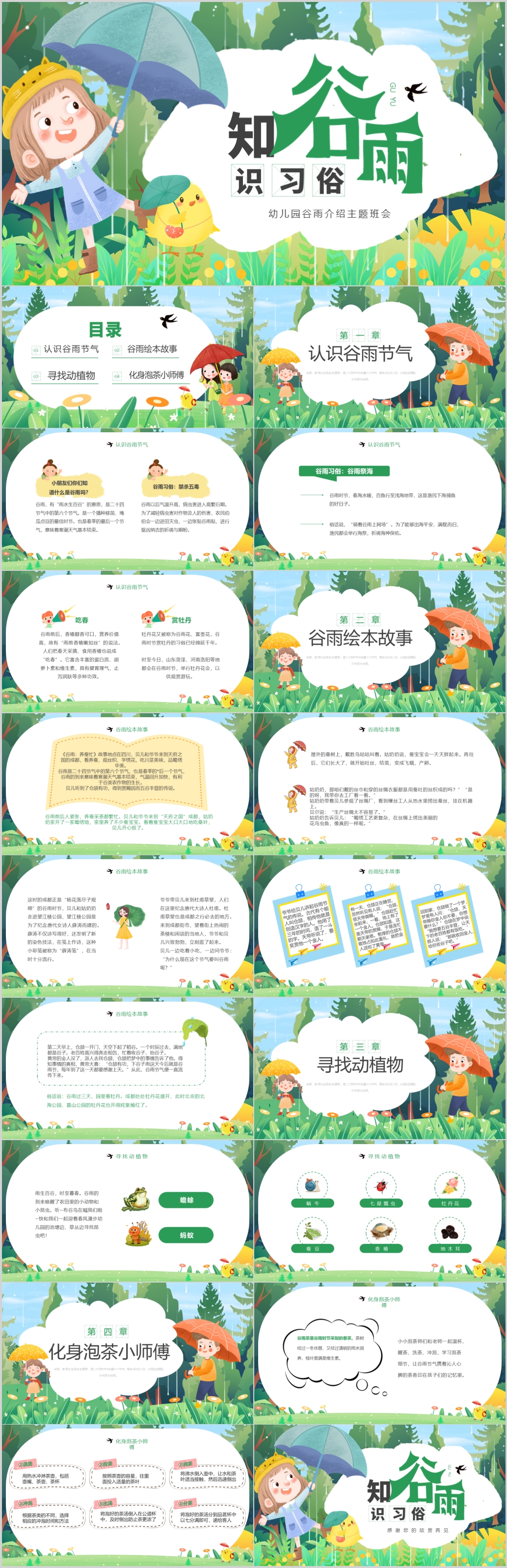 绿色清新二十四节气谷雨节气谷雨PPT模板