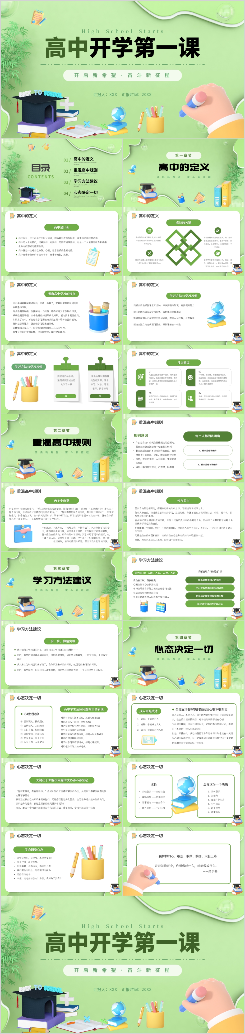 2023年绿色高中开学第一课主题班会课件PPT模板