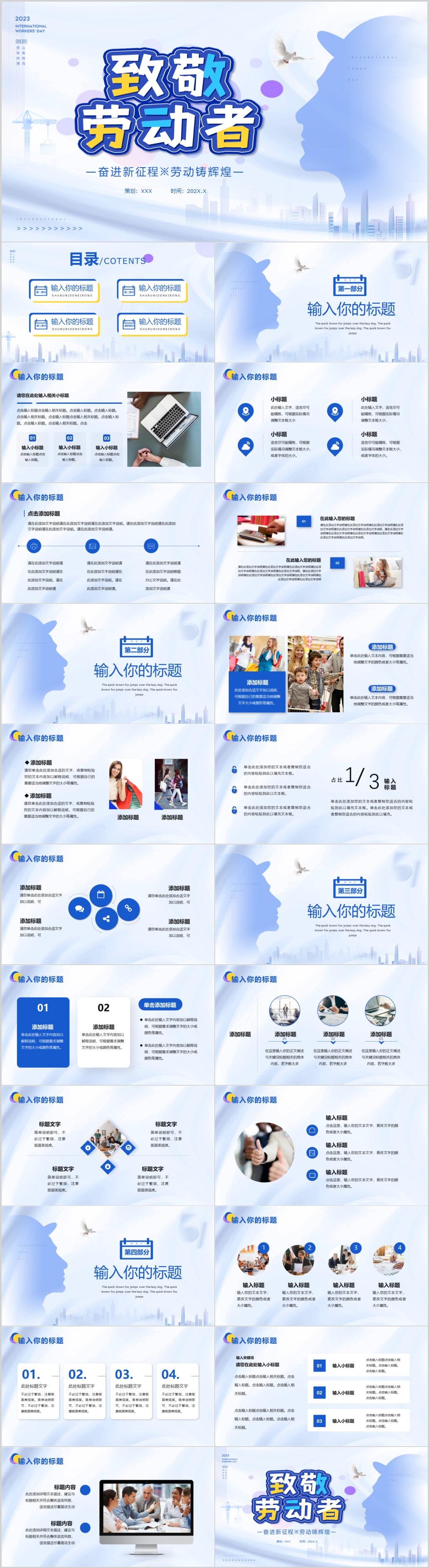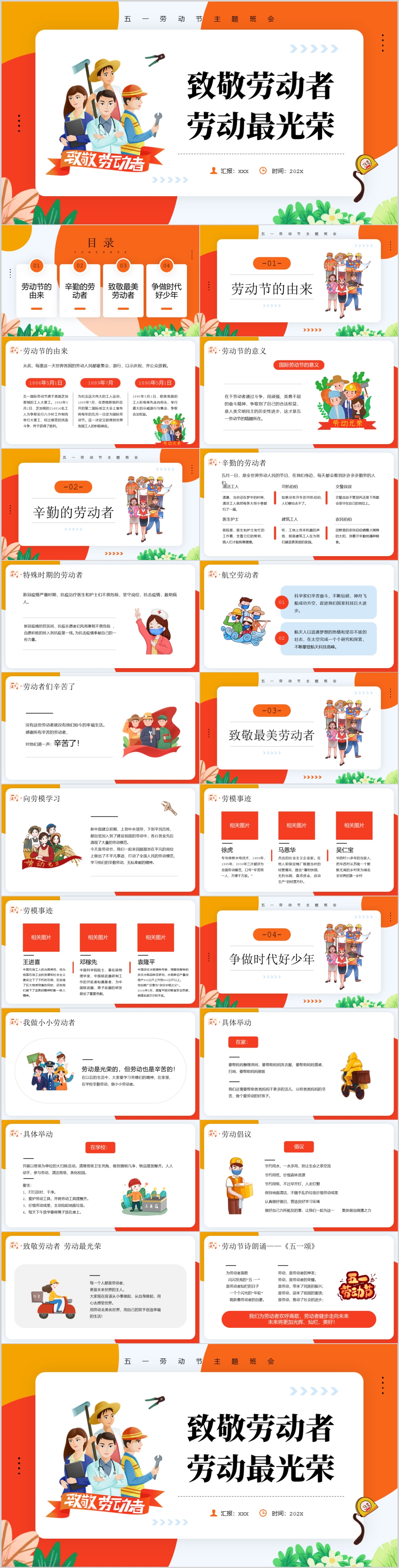2023五一劳动节劳动光荣劳动节由来主题班会课件ppt模板