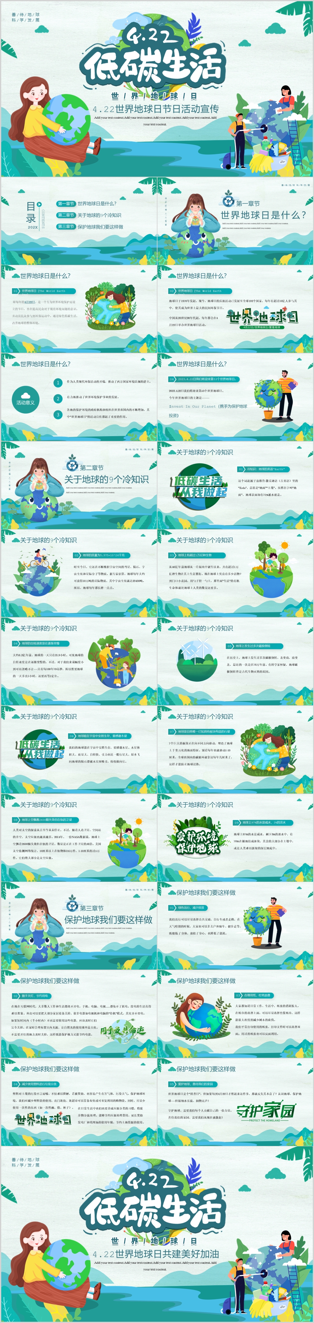 2023年卡通世界地球日绿色环保教育主题课件ppt模板