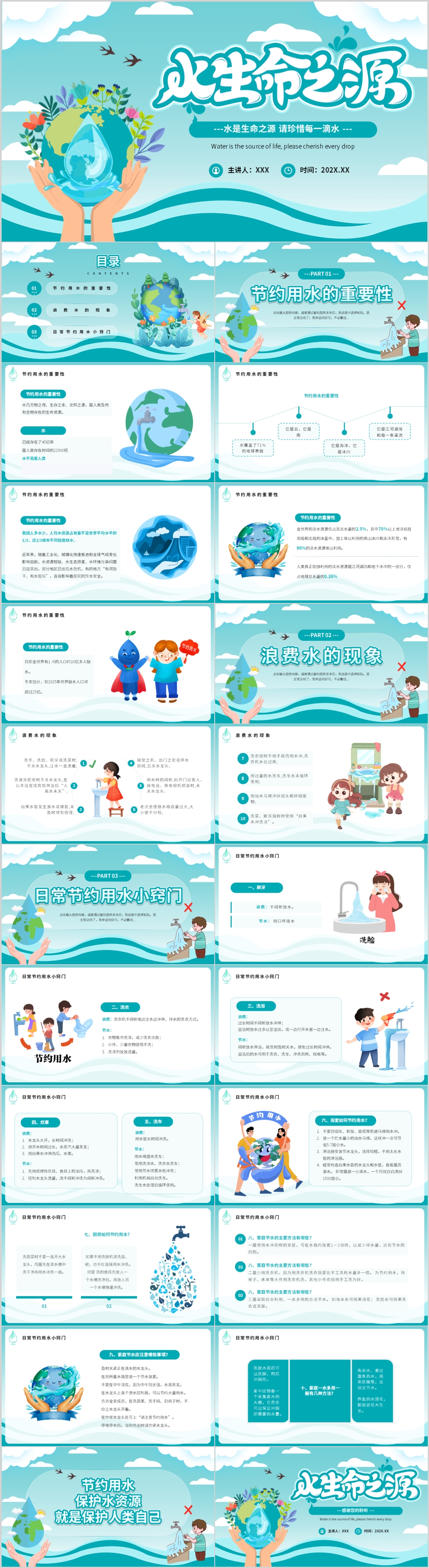 蓝色珍惜水资源节约用水珍惜水ppt动态模板