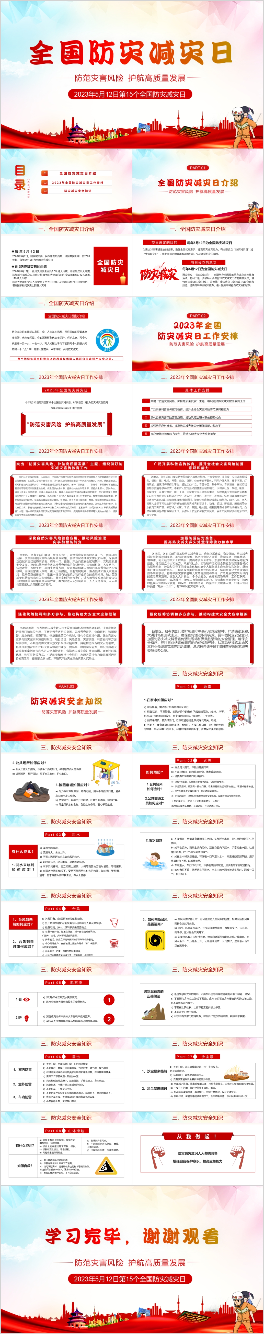 2023年512全国防灾减灾日地震火灾雷电知识主题班会PPT模板