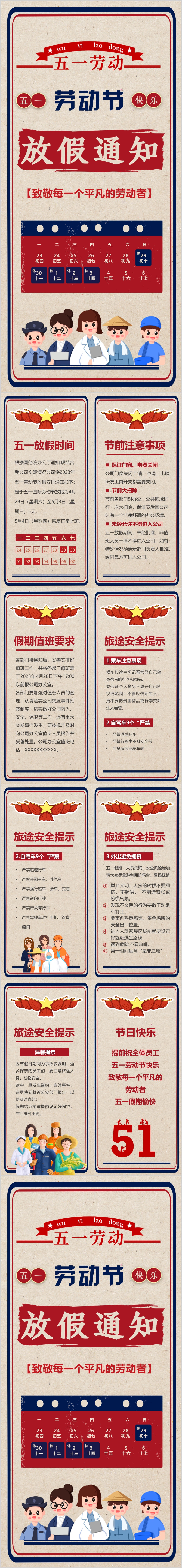2023复古风竖立手机微信H5通用五一劳动节放假通知ppt模板