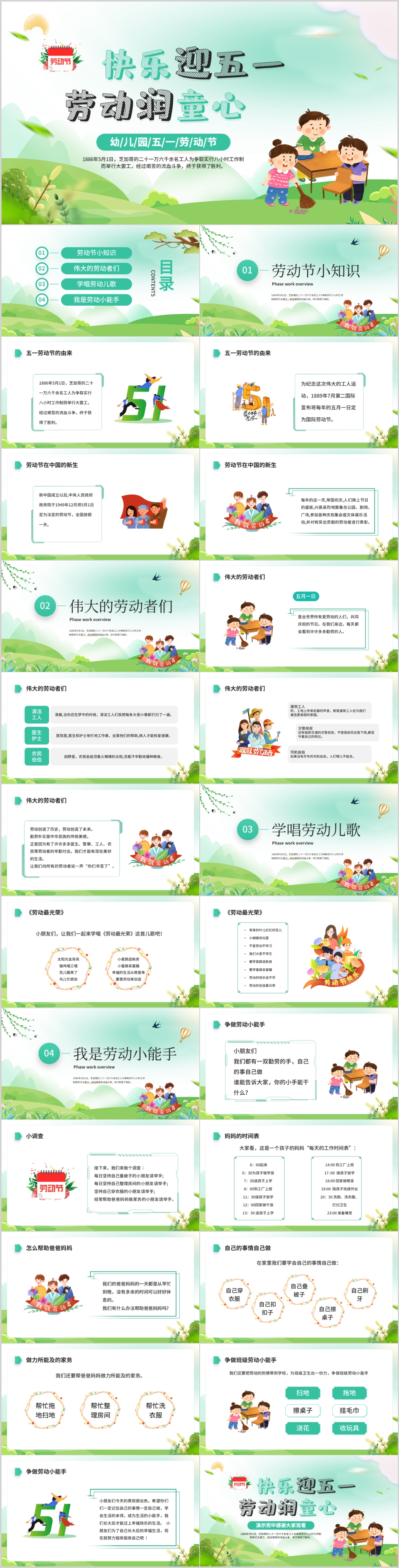 卡通风幼儿园五一劳动节主题班会PPT模板