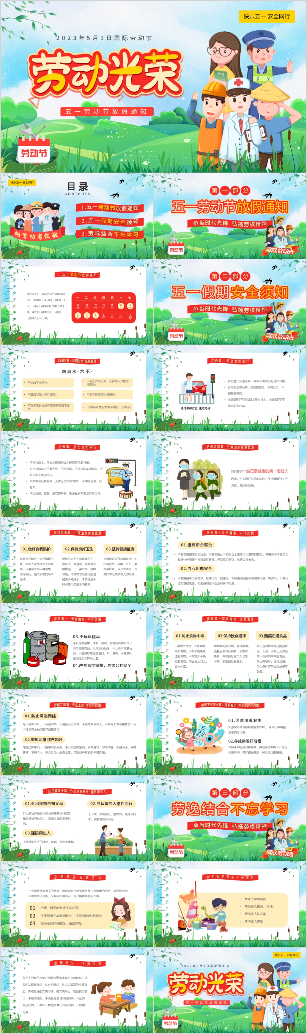 卡通五一劳动节放假通知假期安全教育ppt模板