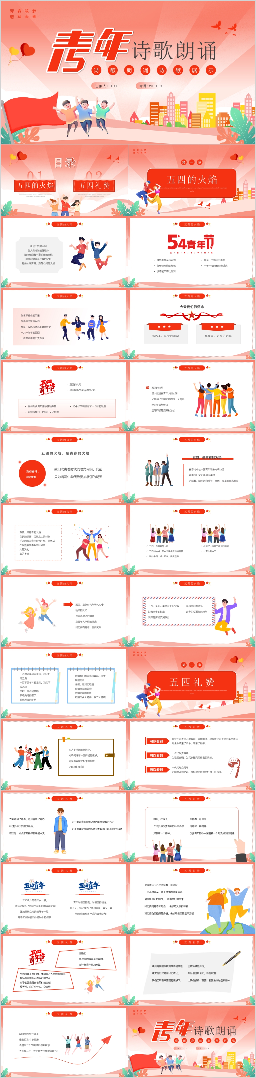 2023五四运动五四青年青年诗歌朗诵主题课件PPT模板