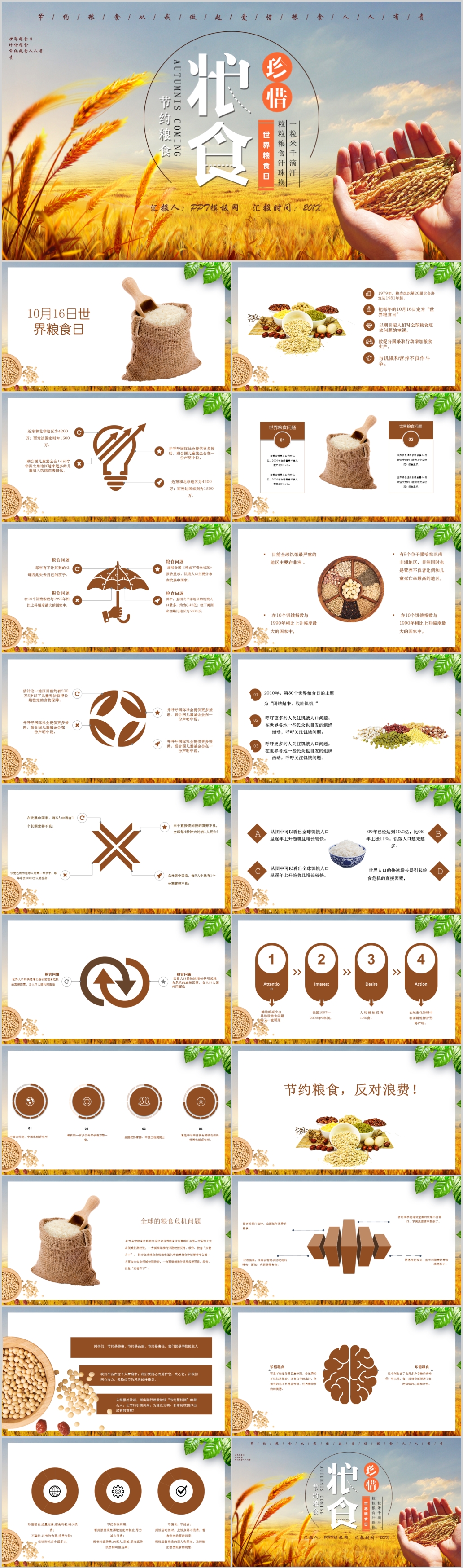 农业发展粮食稻谷金秋丰收节约粮食宣传主题PPT模板