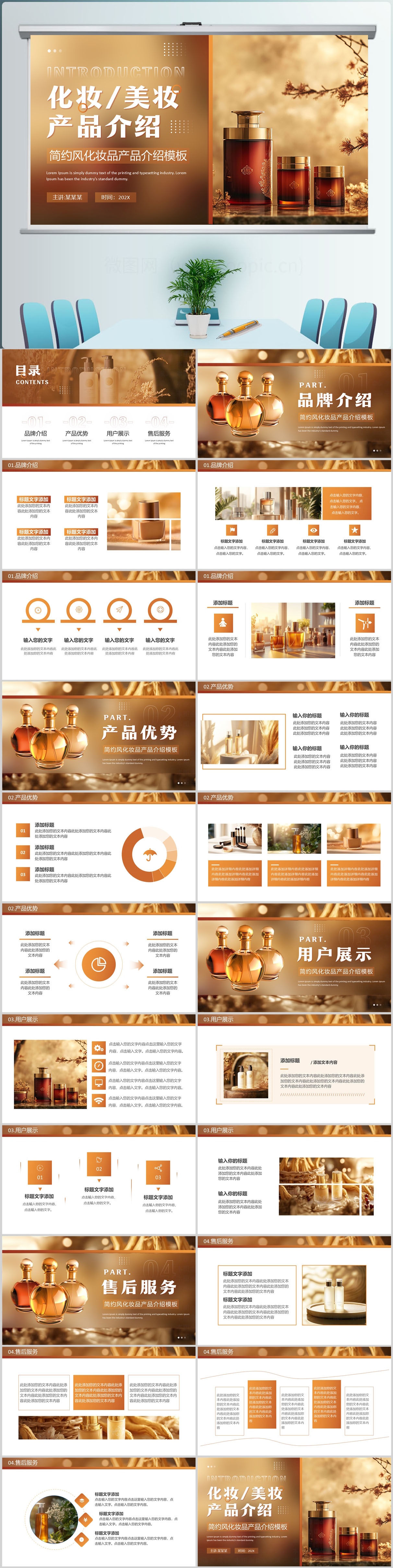 棕色简约风化妆品产品介绍PPT模板设计