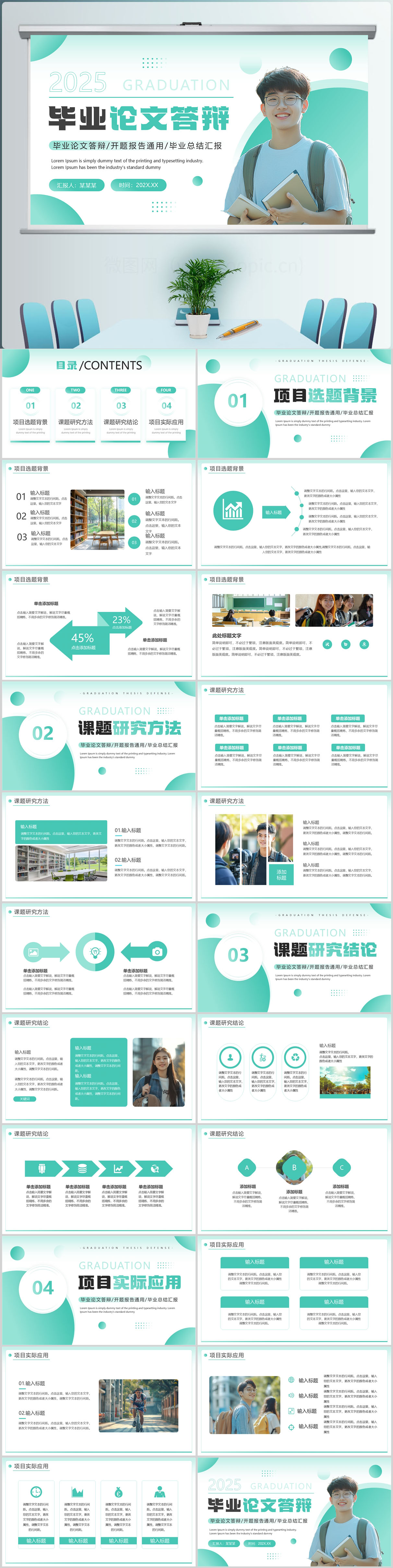 绿色简约风毕业论文答辩PPT模板设计