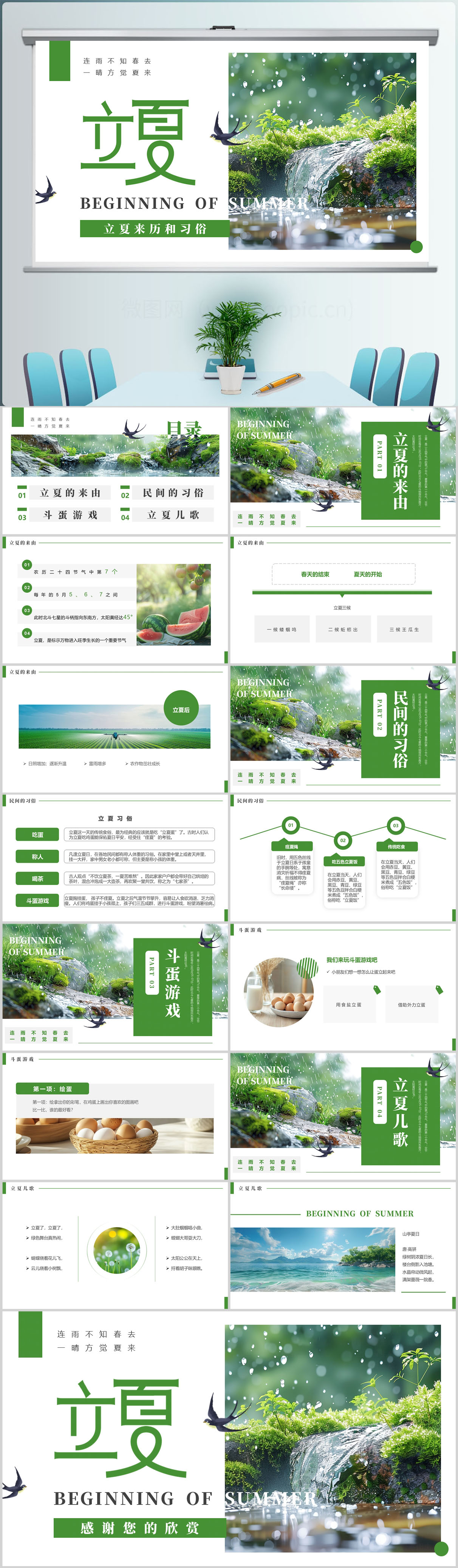 简约风立夏来历和习俗PPT模板设计