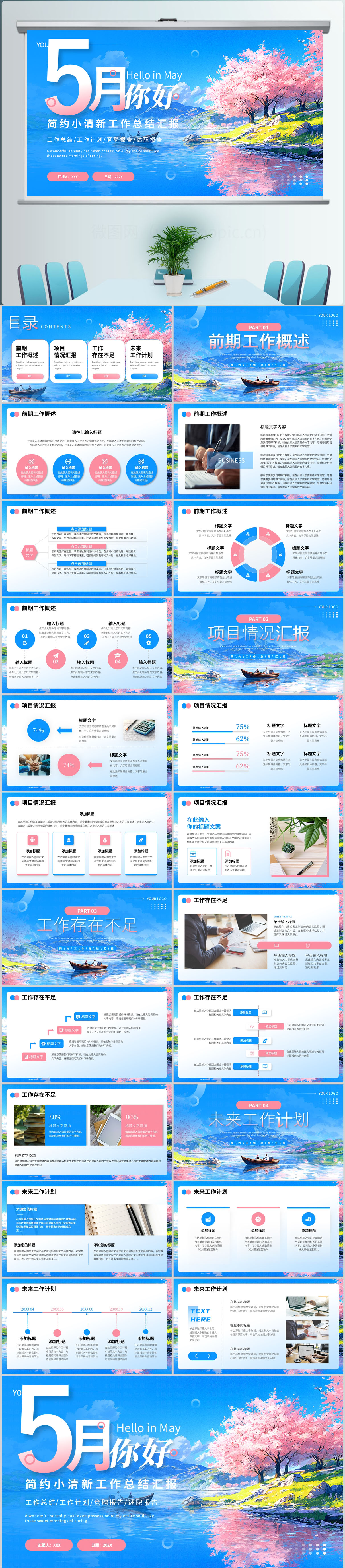 5月你好小清新工作总结汇报ppt模板设计