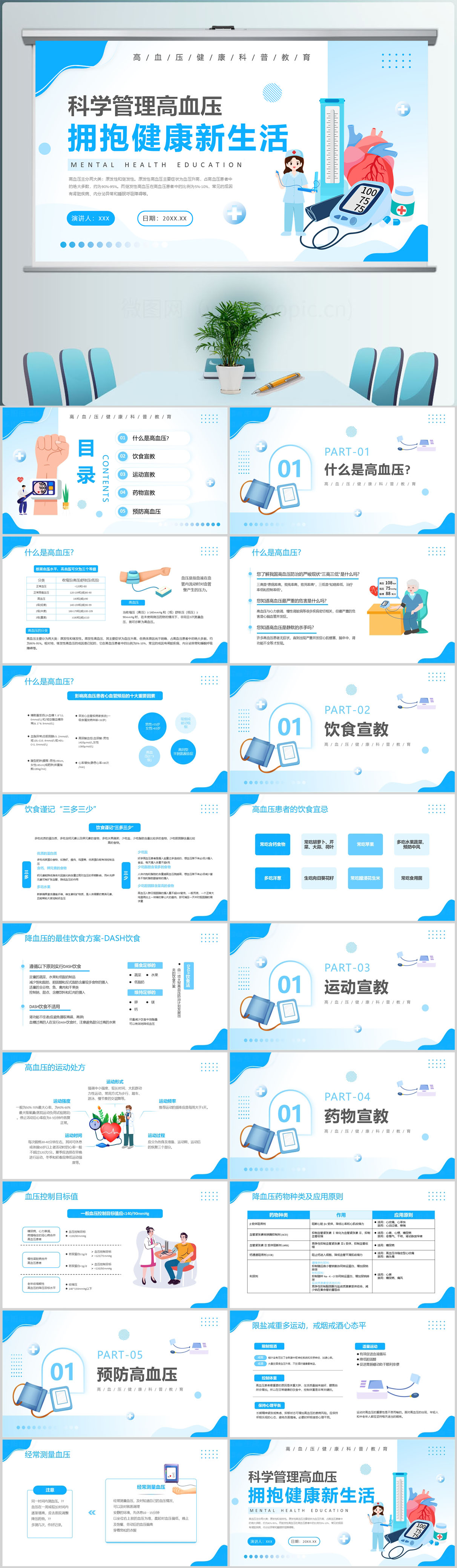 卡通风预防高血压医疗知识宣传PPT模版设计