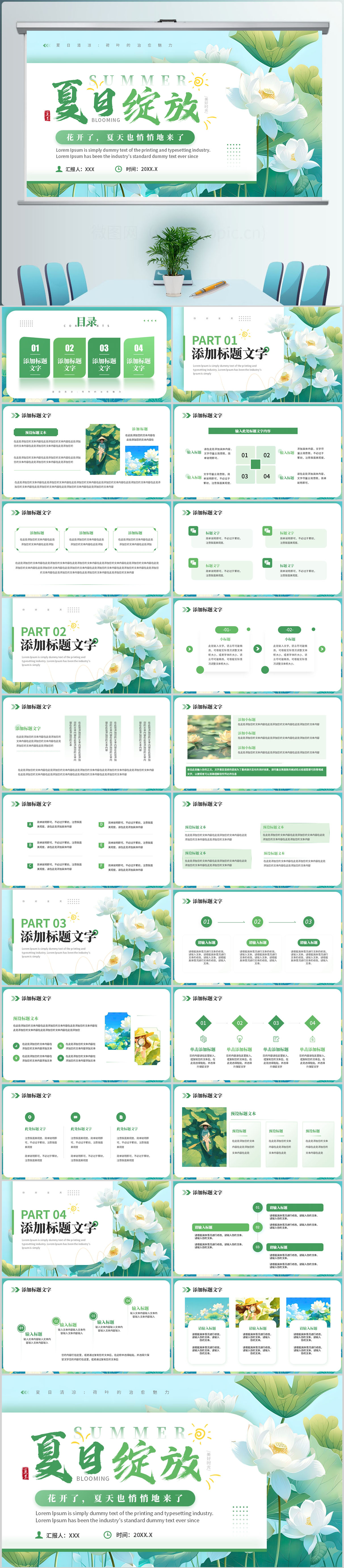 小清新夏日绽放夏天你好PPT模板设计