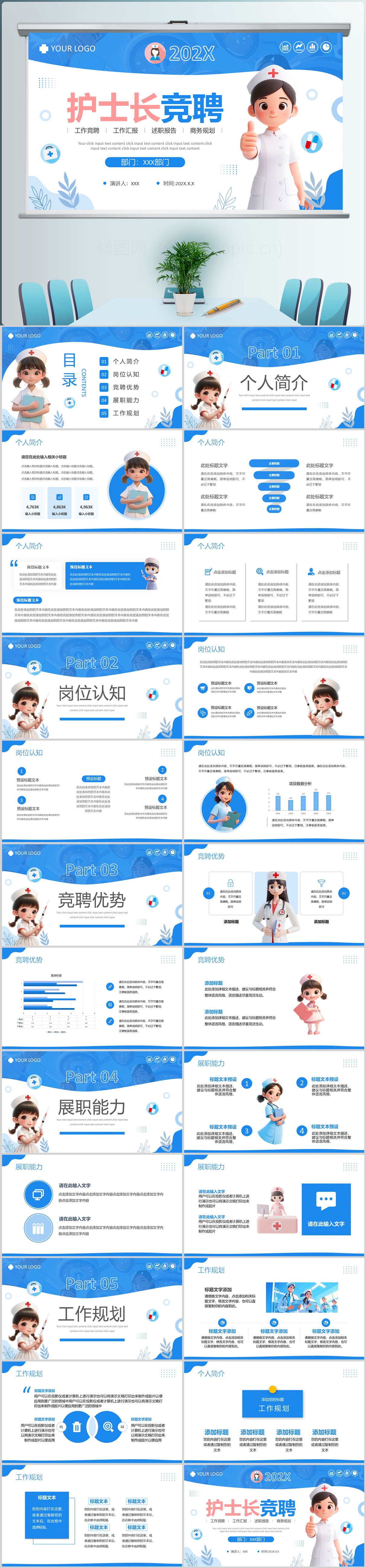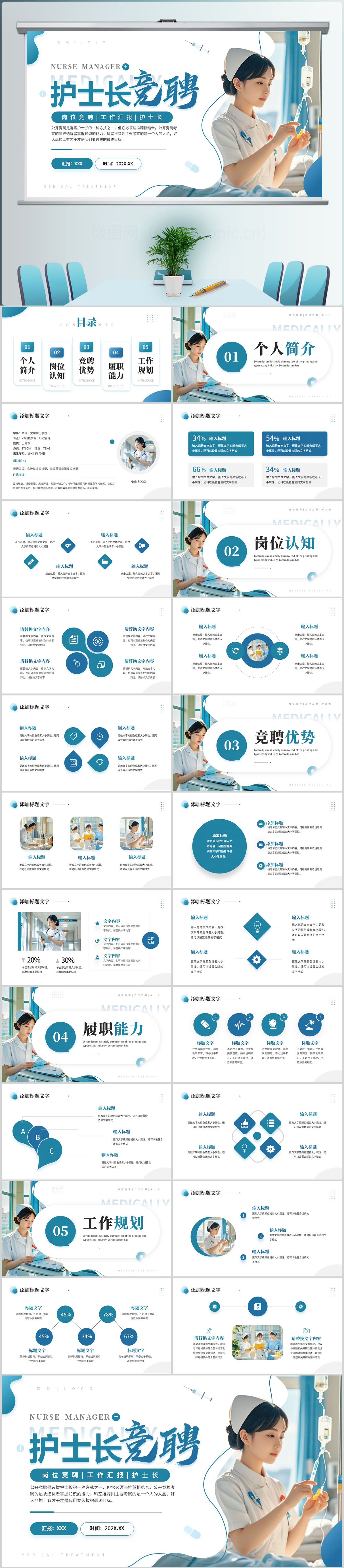 简约风护士长竞聘报告PPT通用模板设计