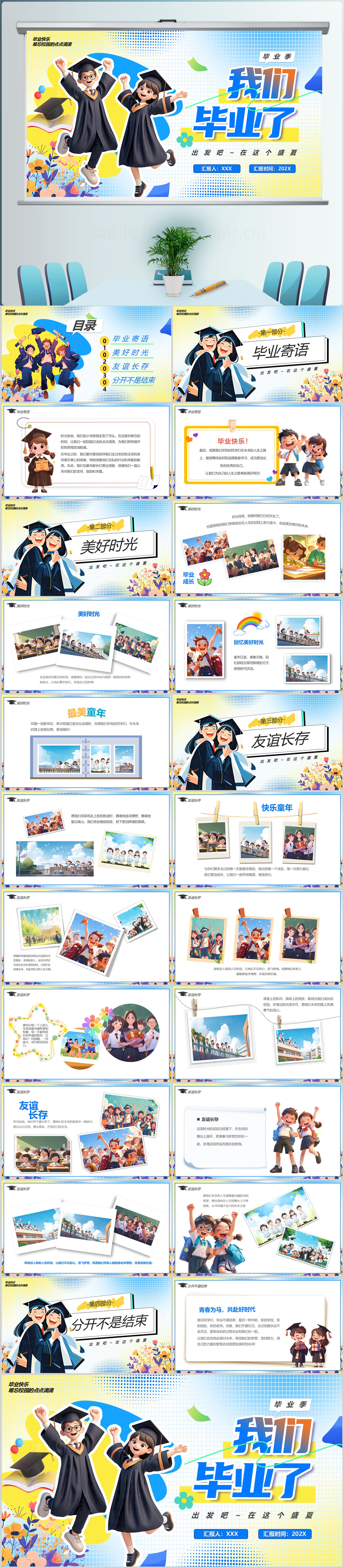 我们毕业了小学毕业纪念相册纪念册PPT模版设计