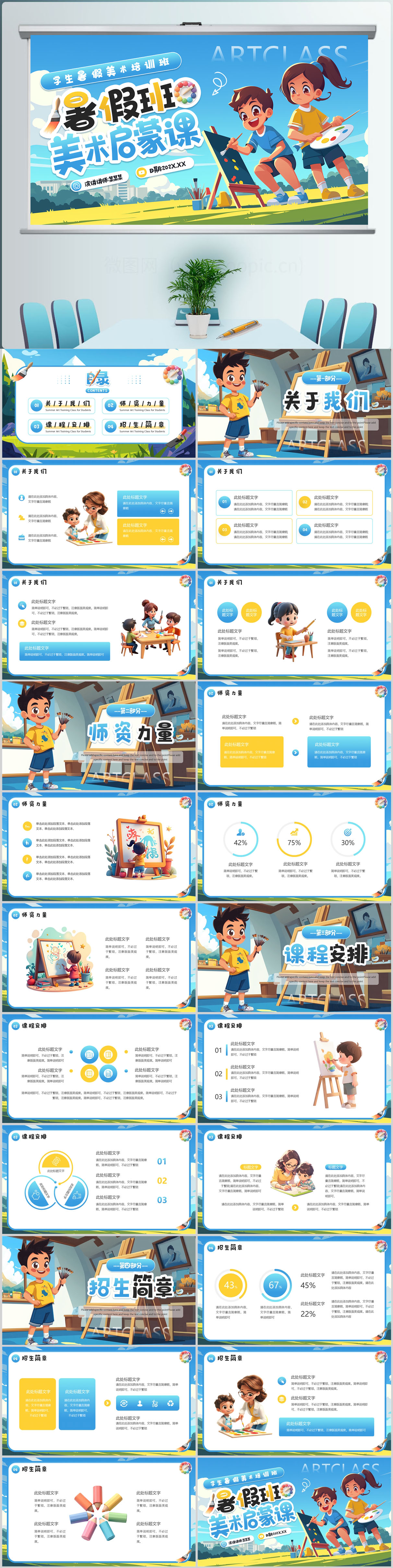 少儿儿童暑假绘画美术培训班ppt模板设计