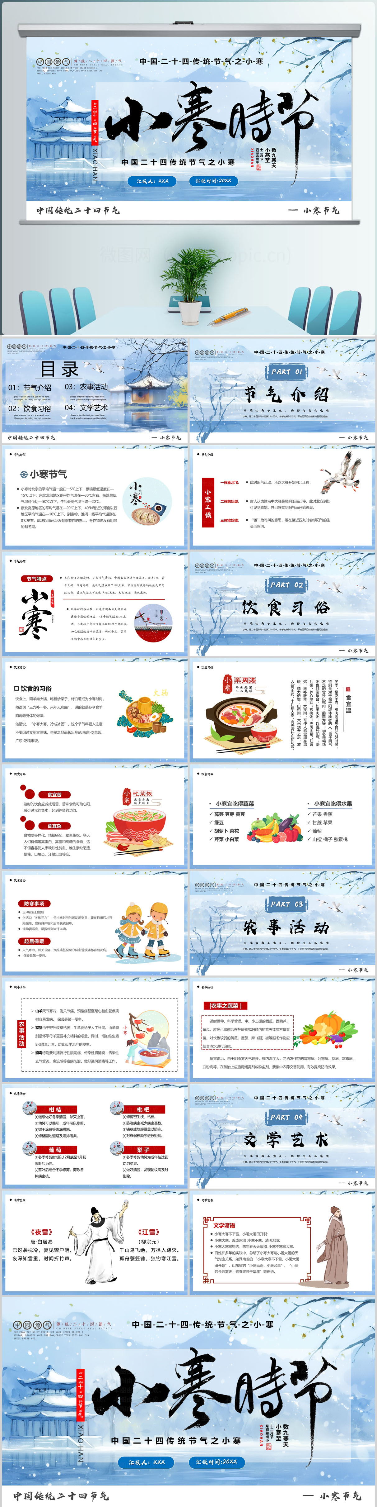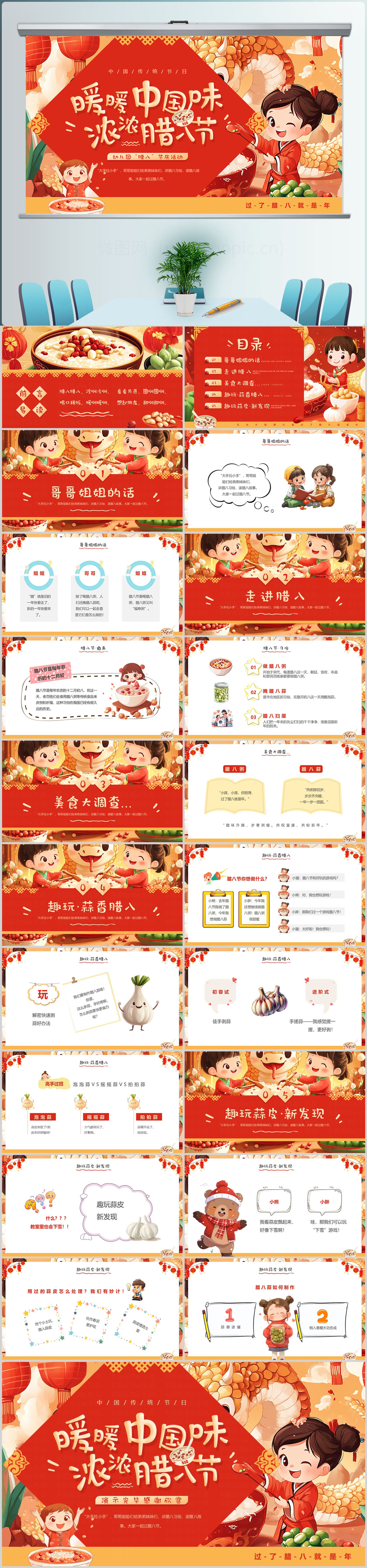 卡通风中国风中小学幼儿园腊八节主题班会PPT模版设计