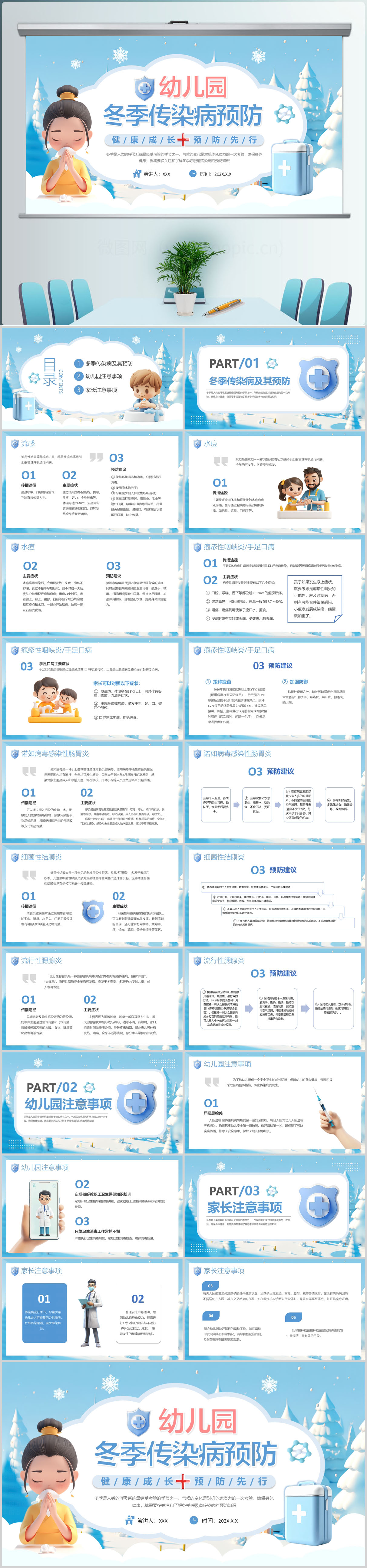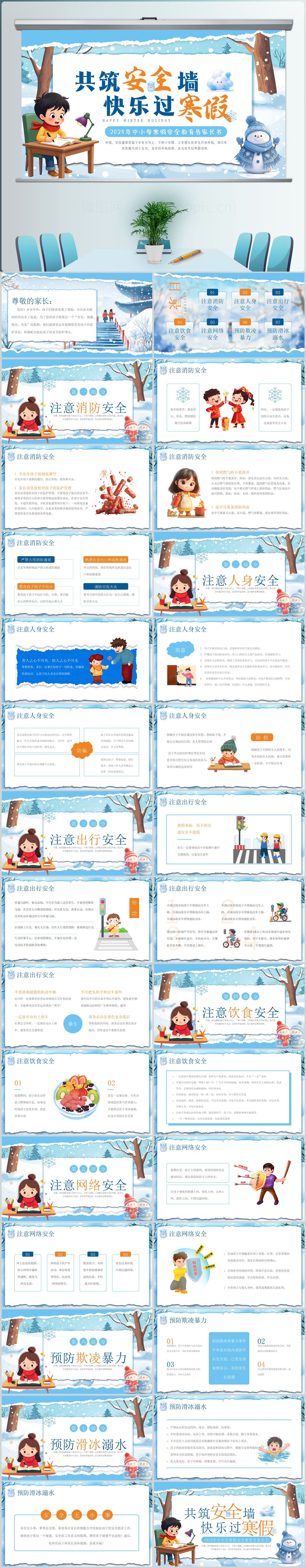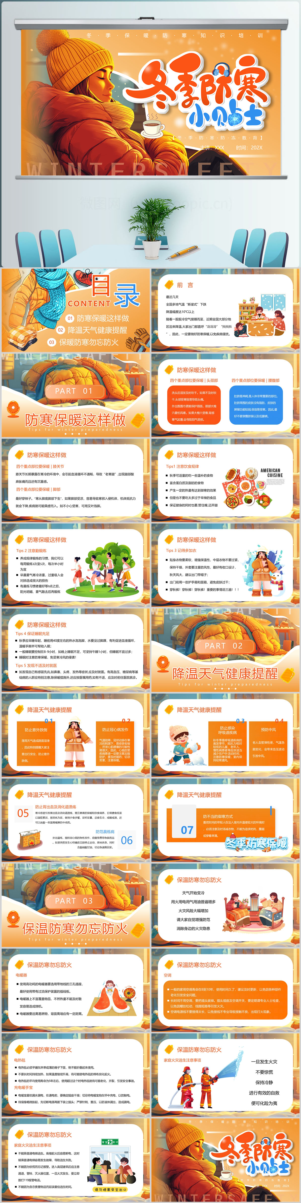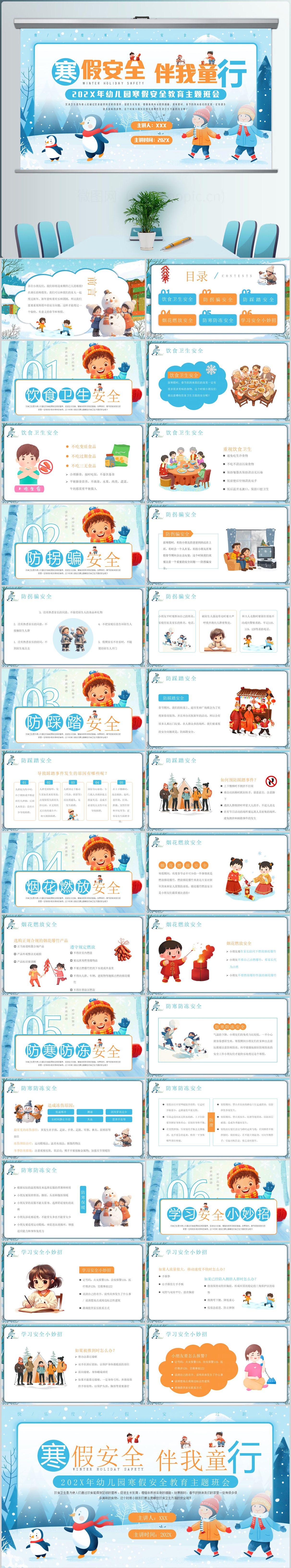 冬季防寒保暖主题安全教育卡通PPT模设计