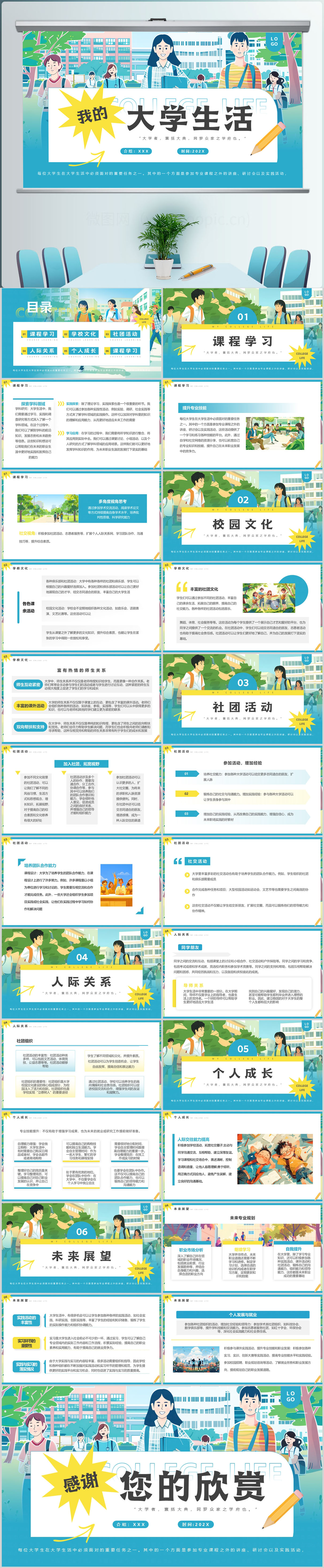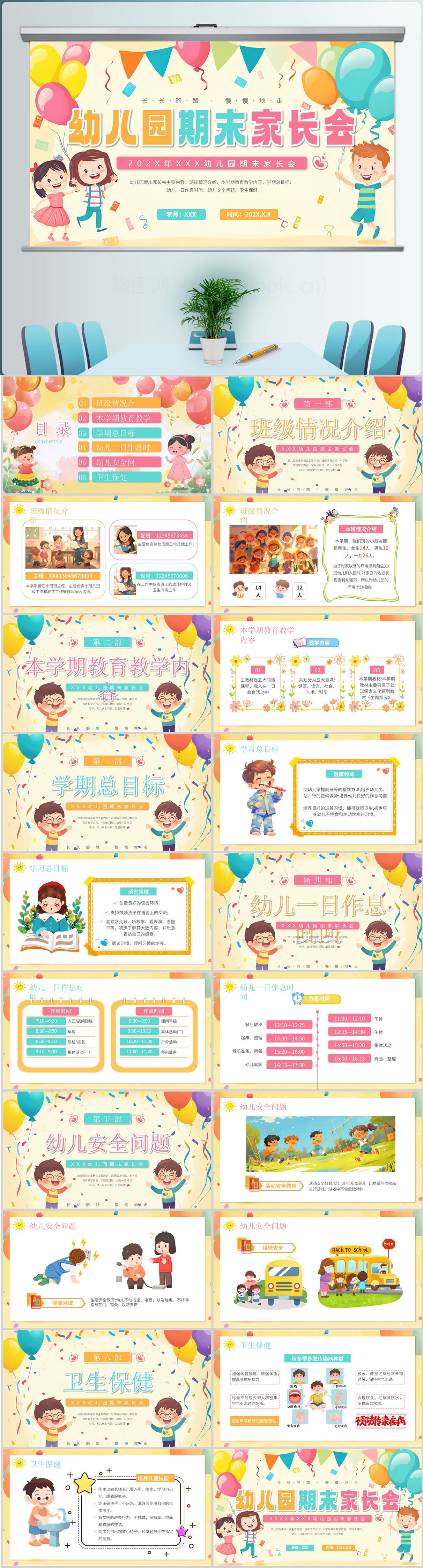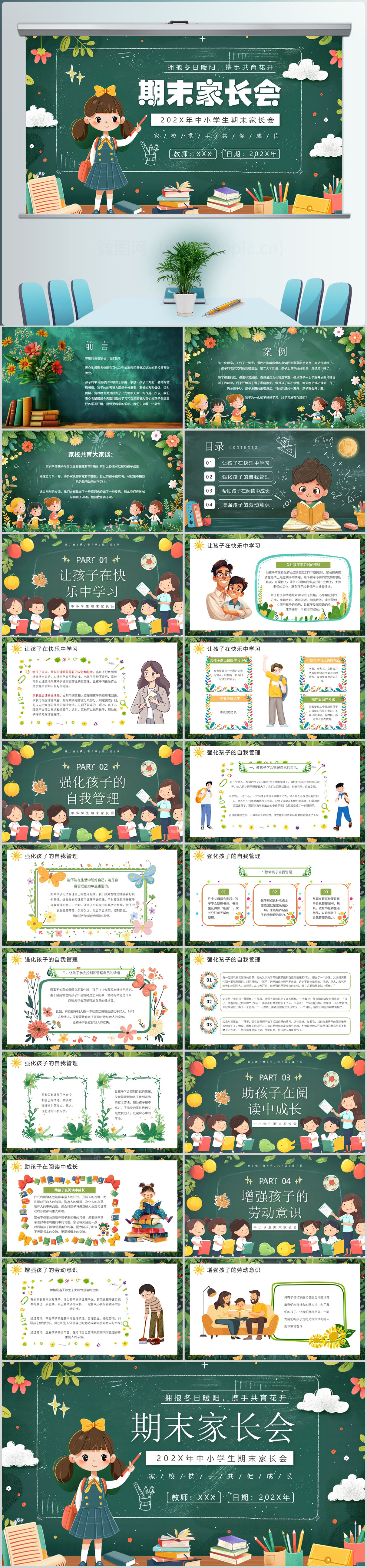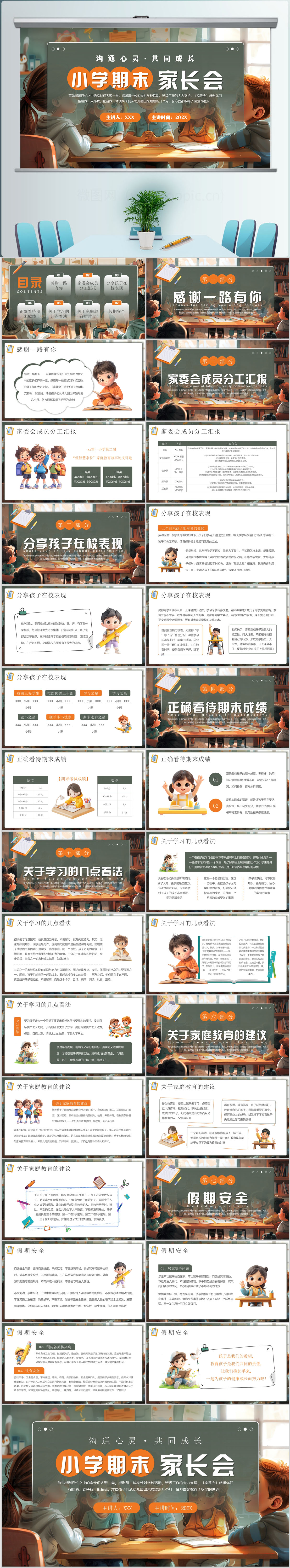 绿色卡通学生期末高三家长座谈会PPT模板设计